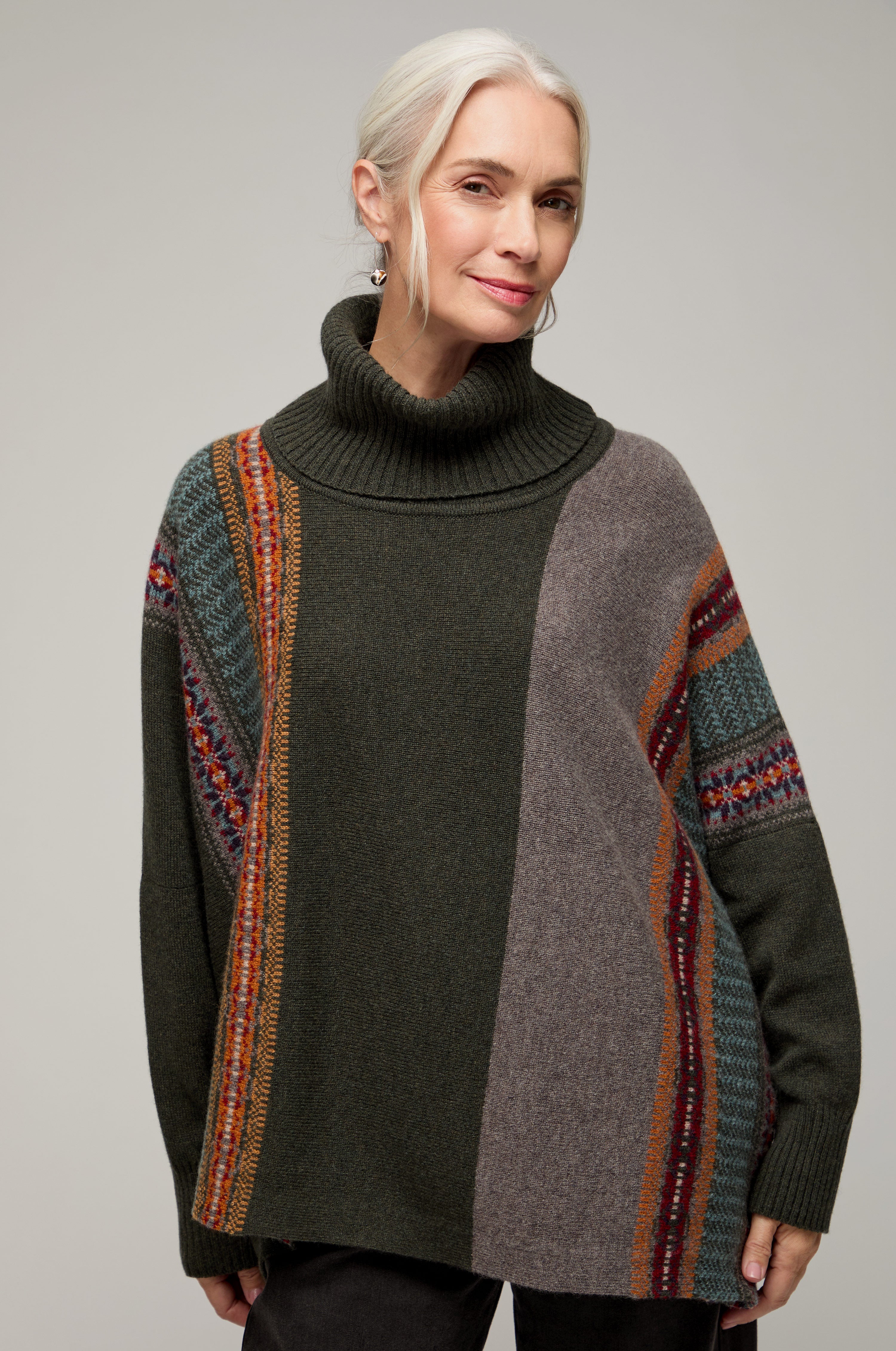 Bracken draws on earthy tones of moss green, russet brown, and fern, lifted by lighter olive and oat accents. This grounded palette is ideal for those who favour natural, outdoors-inspired hues. Style it with boots and corduroy trousers for an autumnal ensemble, or wear with black tailoring for an effortless contrast of rustic colour and clean lines.