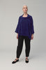 Sumptuous velvet silk and viscose blend, gives this Thanny top a soft sheen and fluid drape. The boxy cut sits away from the body, while side button detailing adds a sculptural touch and subtle styling versatility. The petrol blue hue shifts between teal and navy in changing light, enhancing the fabric’s depth.