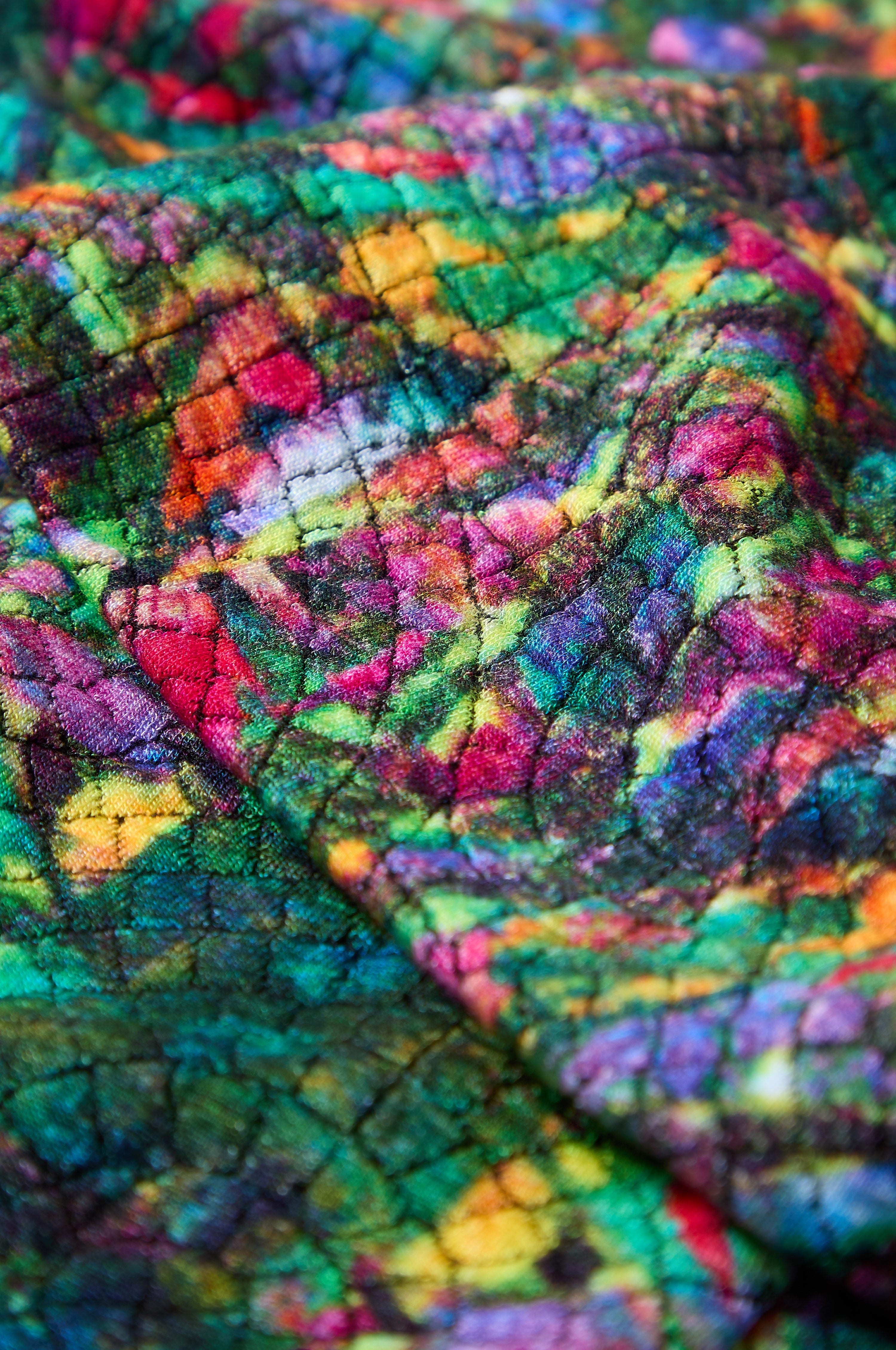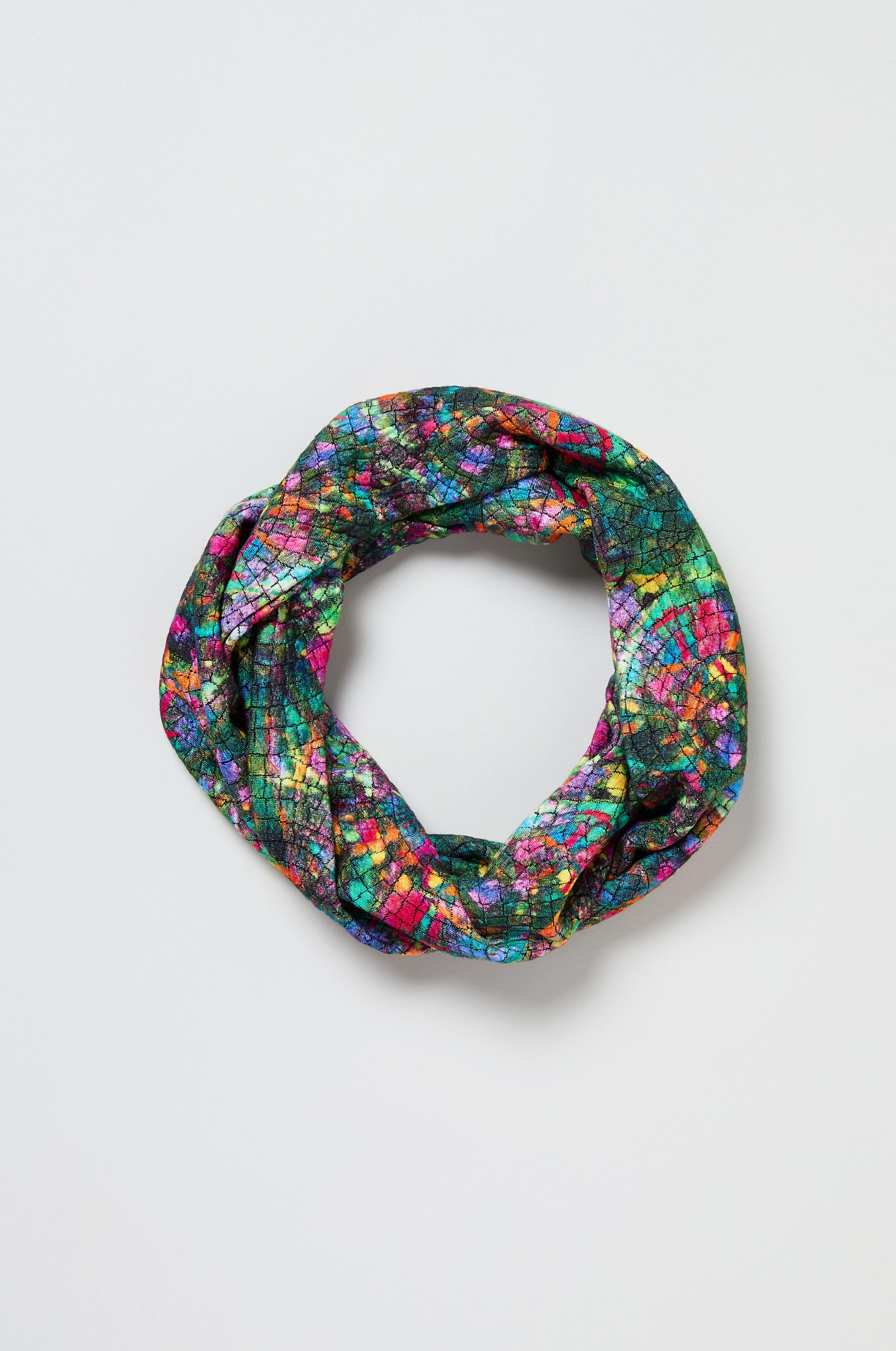 Crafted from tactile textured jersey, the Aino Circle Snood offers both warmth and artistry. The looped construction drapes generously around the neck, while the multicolour circle print enlivens the jade background. Soft to the touch with natural stretch, it is a piece that combines comfort with statement design.
