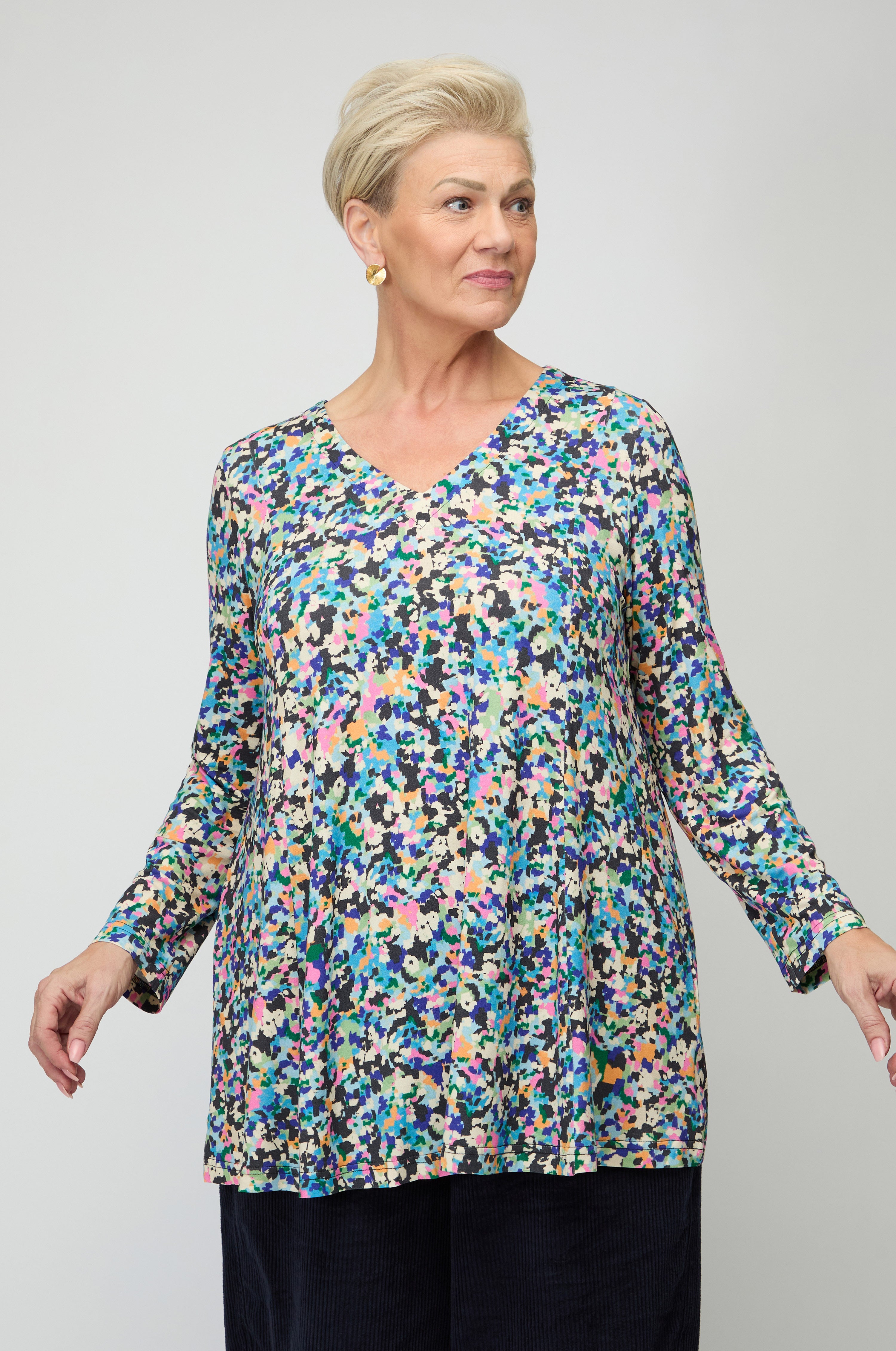 The Colourful Confetti Jersey Top is a playful update to an everyday essential. Cut from a smooth and breathable jersey with a fluid drape, this easy silhouette skims the body for an airy fit that feels weightless. Splashed with a multicoloured painterly print, it offers a wearable take on bold pattern. Designed with a round neckline and softly dropped shoulders, it’s a joyful layer that pairs well with neutrals or accent pieces that echo its vivid tones.