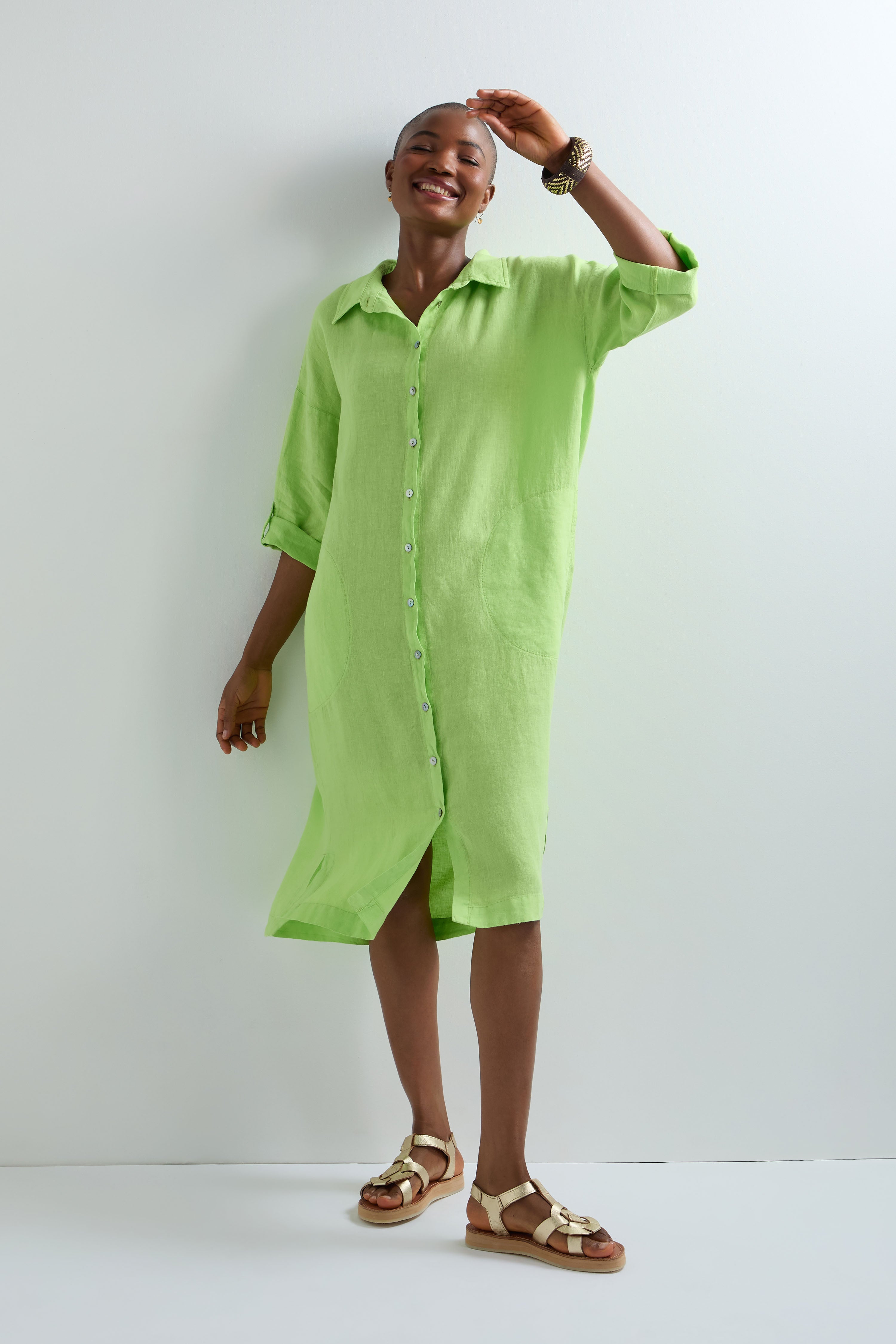 The Linen Shirt Dress is your not-so-basic wardrobe hero; easygoing and endlessly wearable. Crafted from easy linen, it features a classic shirt collar and full button-through front for maximum styling potential.