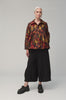 A richly woven jacquard fabric gives this boxy jacket its texture and depth. The open front and relaxed shoulder create an easy layer, while cropped sleeves and a straight hem keep the proportions sharp. The rust and multicolour palette brings warmth, allowing the floral pattern to read with dimension rather than fuss.