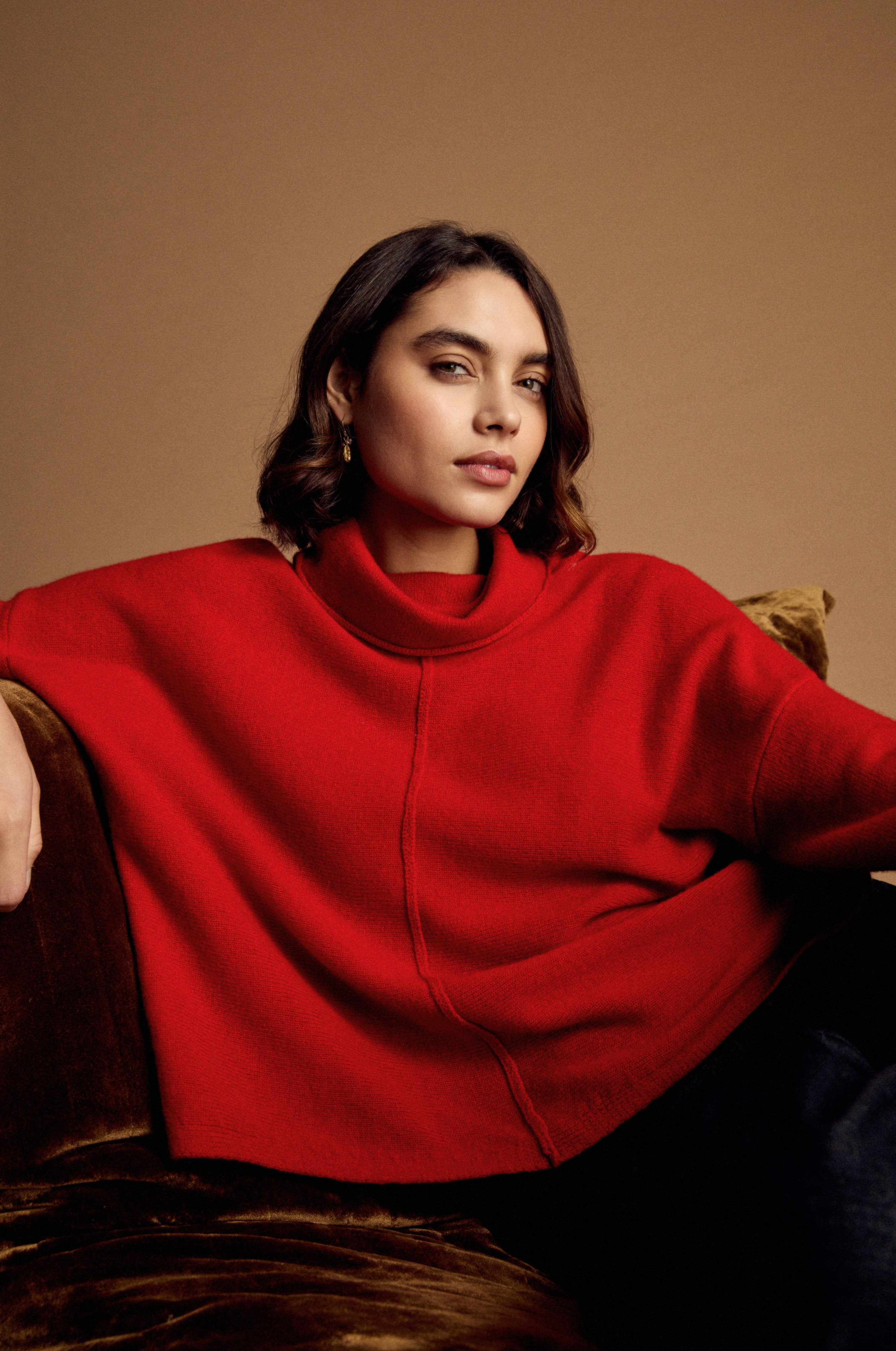Available in vibrant chilli and rich damson, this jumper brings colour to cold-weather dressing. Layer it over dresses, pair with wide-leg trousers or style with skirts for a contemporary take on knitwear. A versatile piece that offers warmth, softness and enduring appeal.