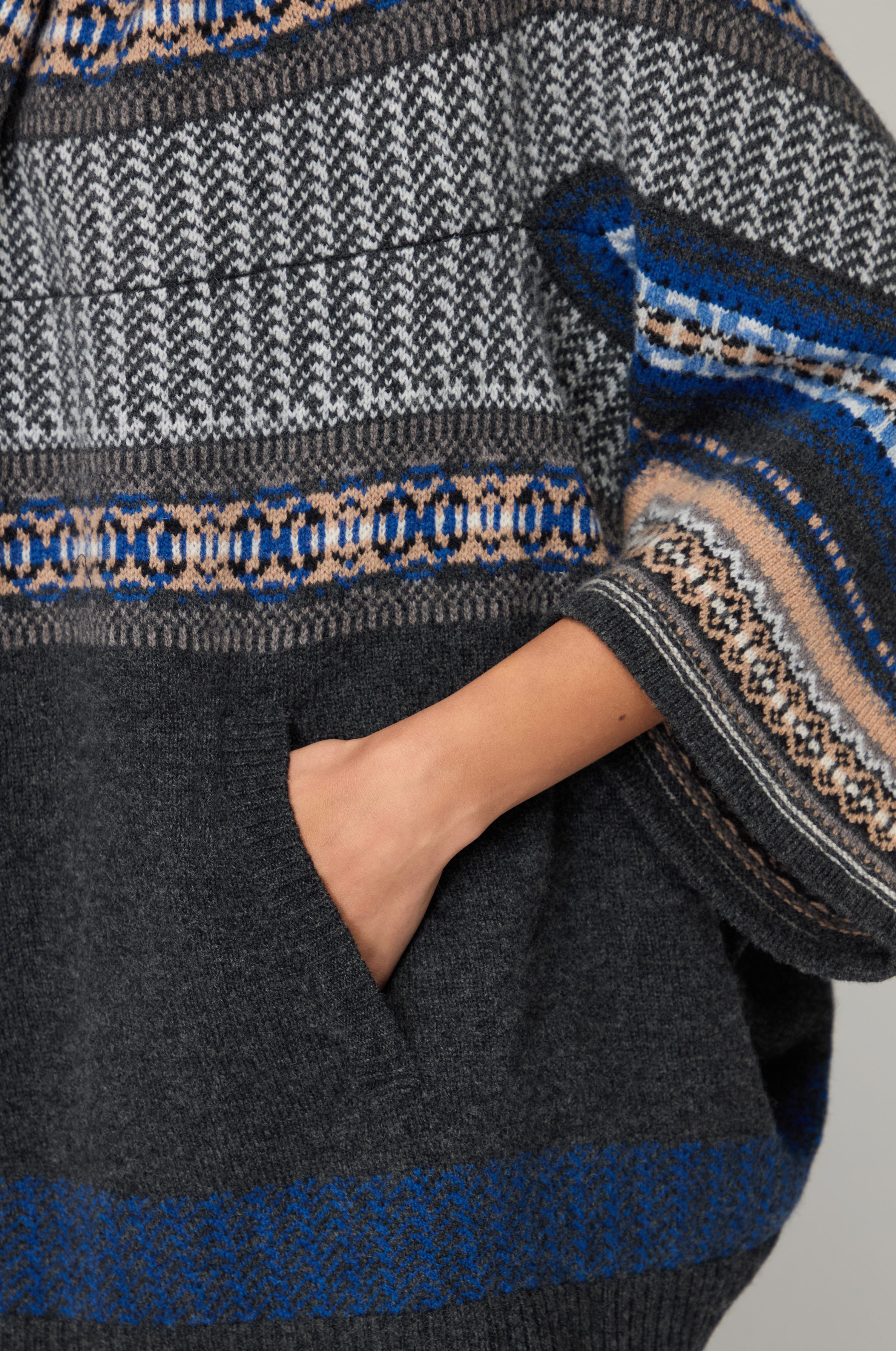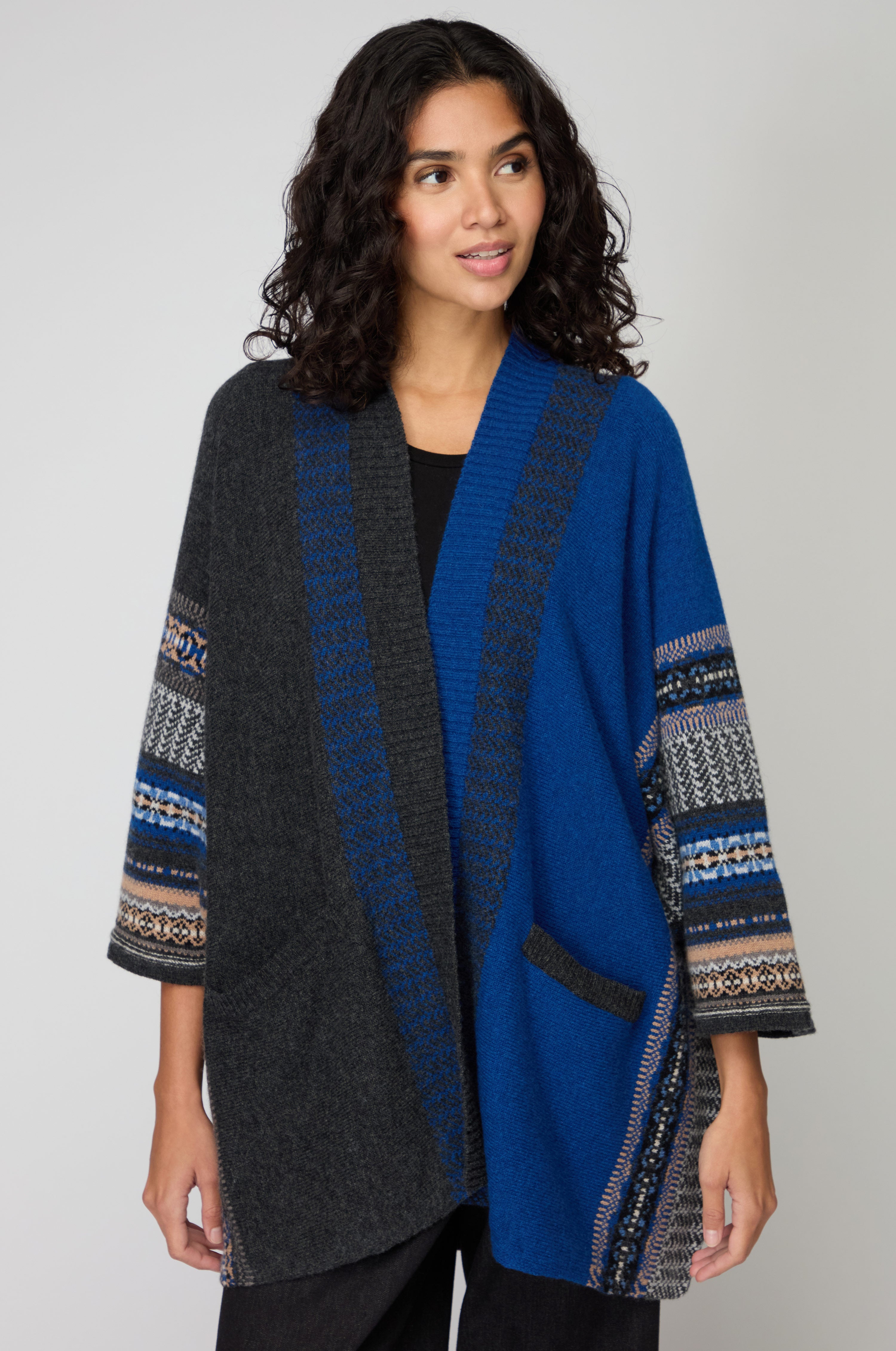 Eribe's Hermes Montrose Blanket Cardigan is made in Scotland from pure merino lambswool, offering warmth and softness with a blanket-coat silhouette. Its oversized fit, patch pockets, and artisan stitchwork create a piece that feels both practical and statement-making.