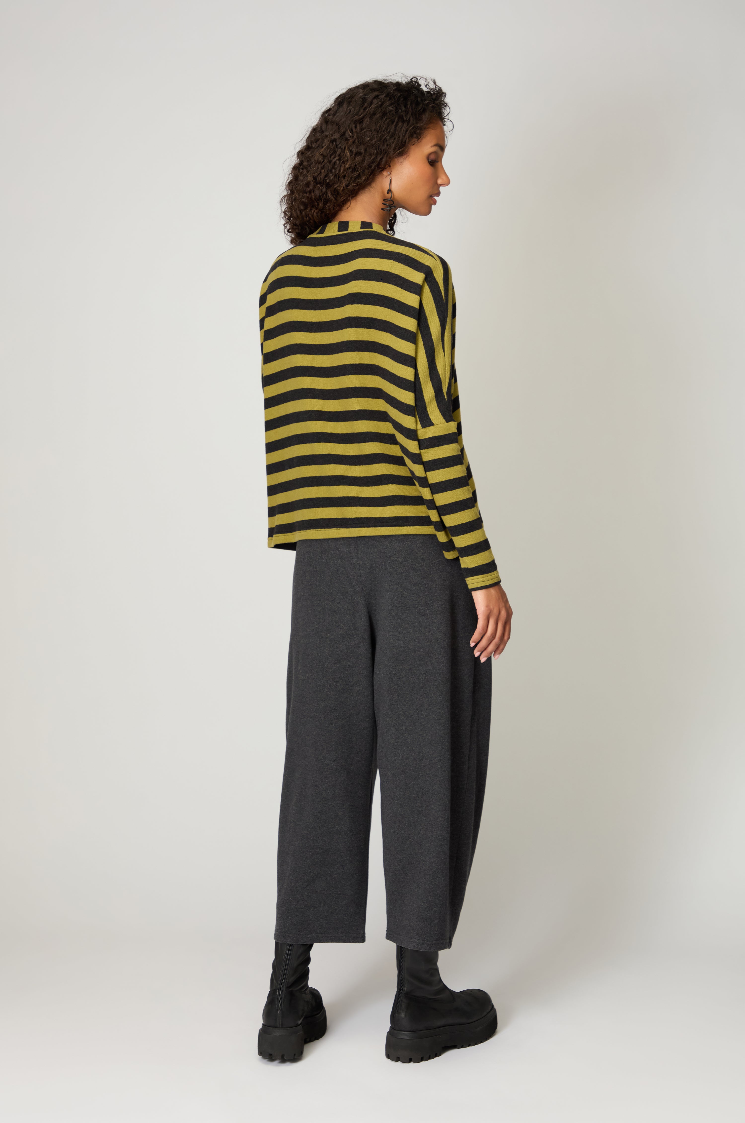 The Neirami Stripe Easy Top is crafted from a soft cotton blend with added stretch for comfort and shape retention. Cut to a relaxed, easy silhouette, it features a boat neckline, long sleeves and a slightly dropped shoulder, allowing the striped fabric to drape fluidly across the body. The bold olive and black horizontal stripes add graphic energy while remaining versatile and wearable.