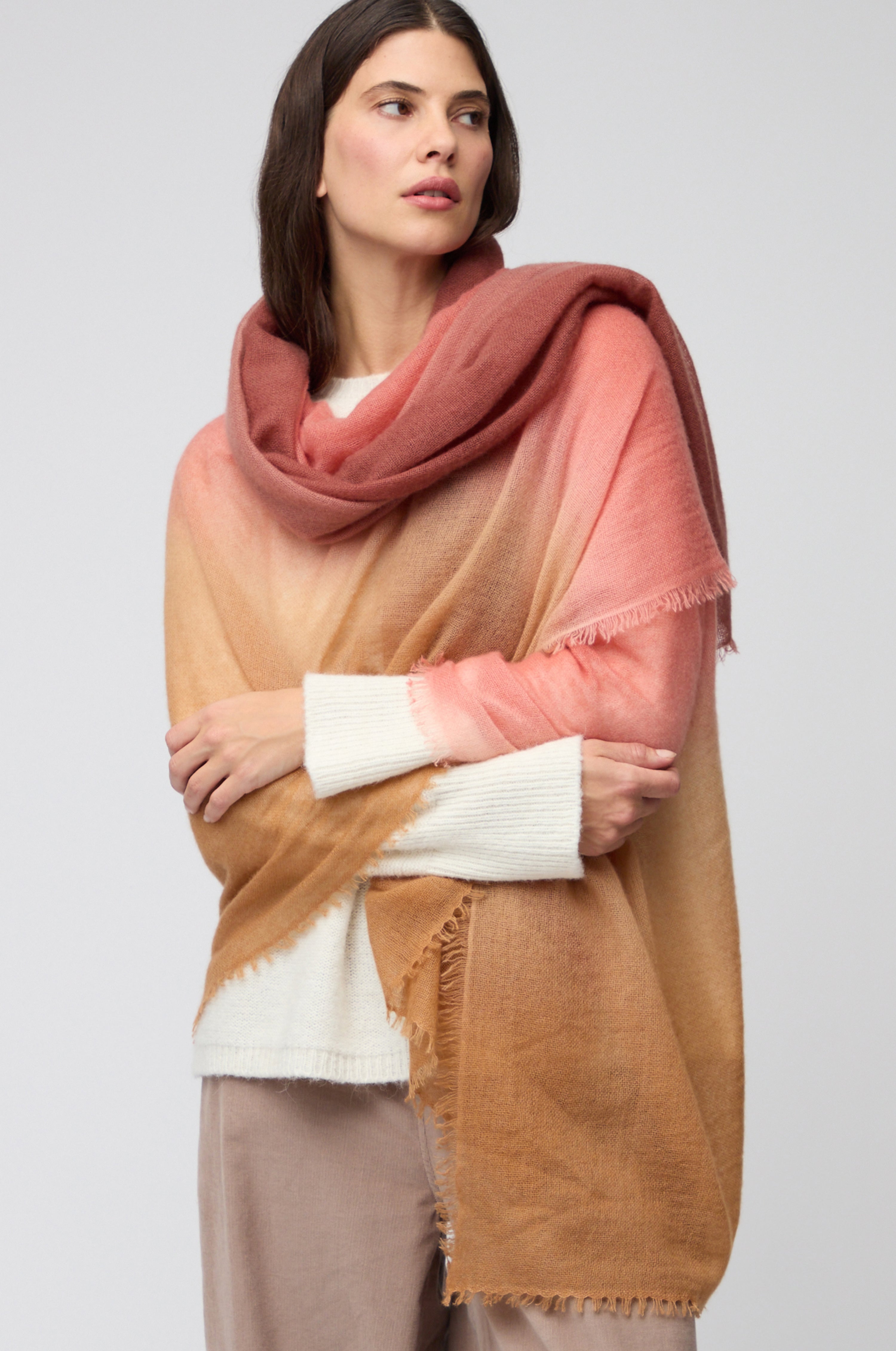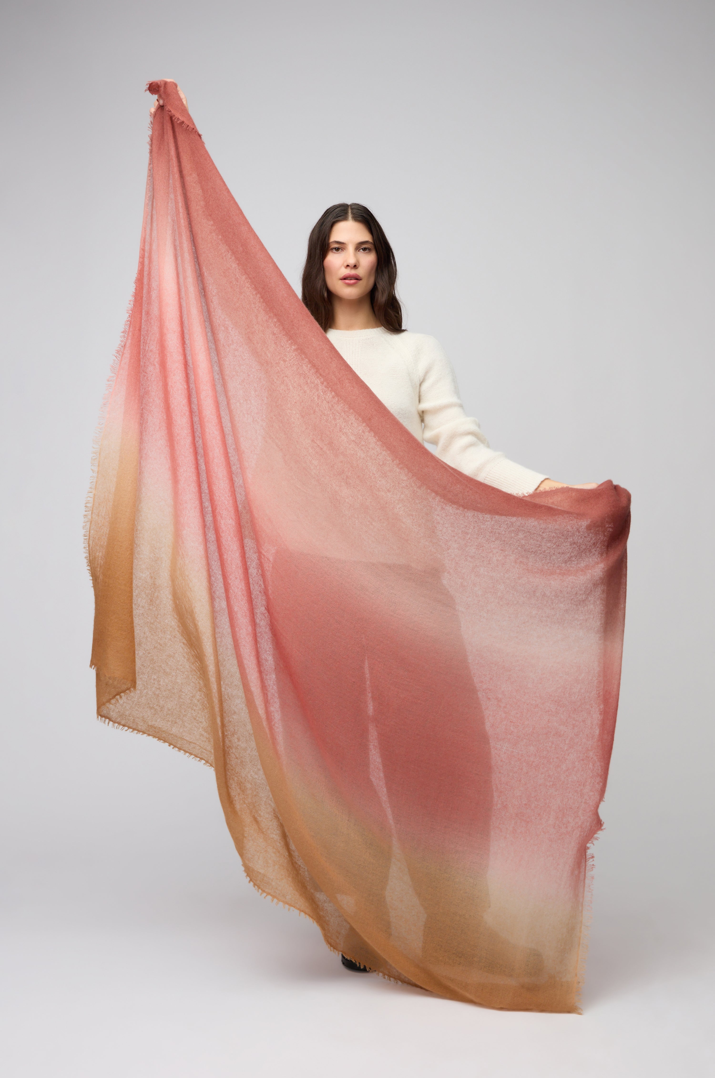 Light as air and soft beyond compare, this exquisite scarf from Mirror in the Sky is woven from 100% pure cashmere. Spun in Nepal using traditional techniques, it features a subtle ombré gradient that blends rich, tonal hues—designed to bring softness, warmth, and quiet elegance to any ensemble.