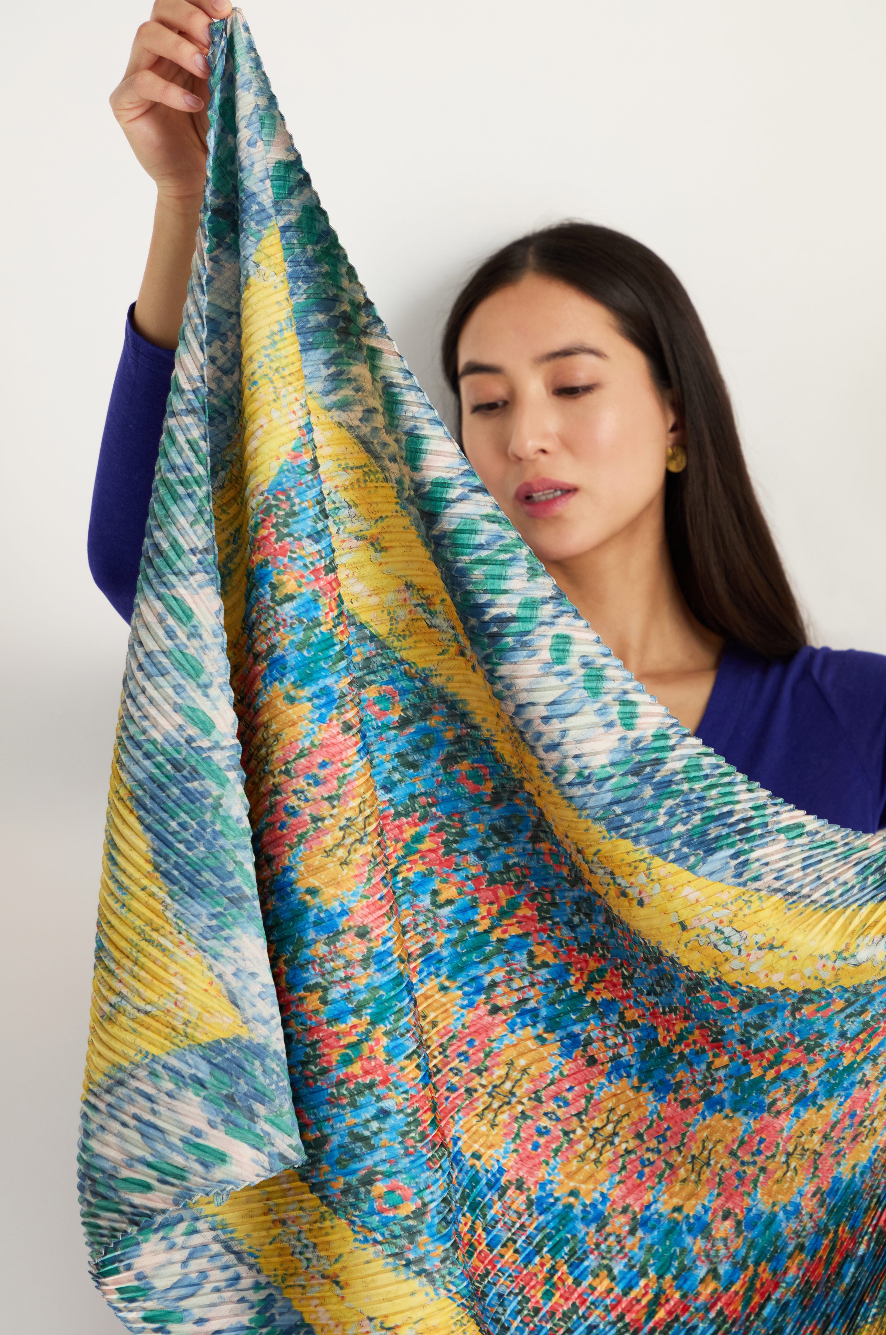 Alexandra Tsoukala's Artistry Pleat Scarf is a lightweight statement accessory that brings colour, texture, and movement to everyday styling. Crafted in finely pleated satin fabric, it drapes fluidly and offers versatility whether worn knotted, wrapped, or left loose.