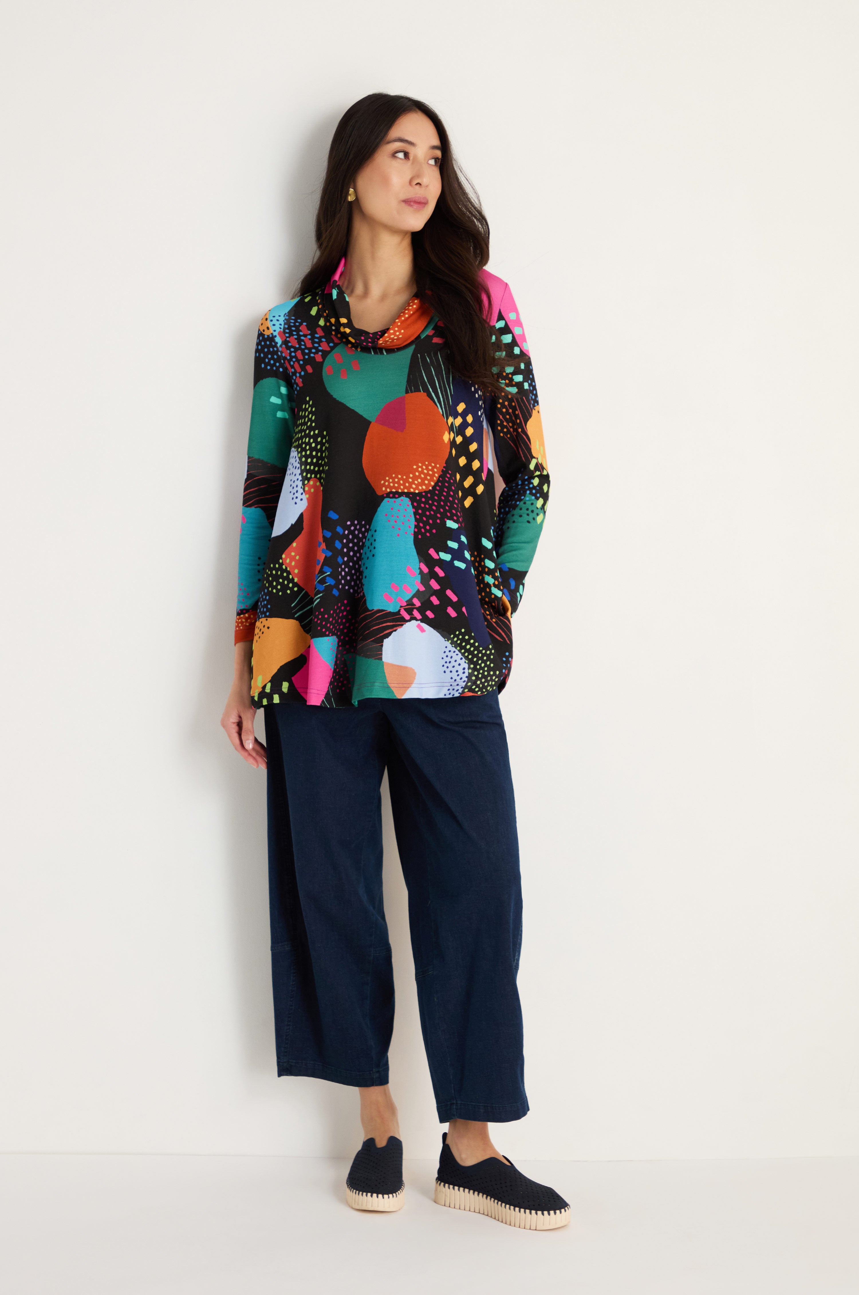 The Sahara Colour Play Print Jersey Tunic is designed as an easy layering piece, pairing a relaxed shape with an expressive, artistic print. The swingy fluid jersey and softly draped lines give it an effortless feel for everyday wear.