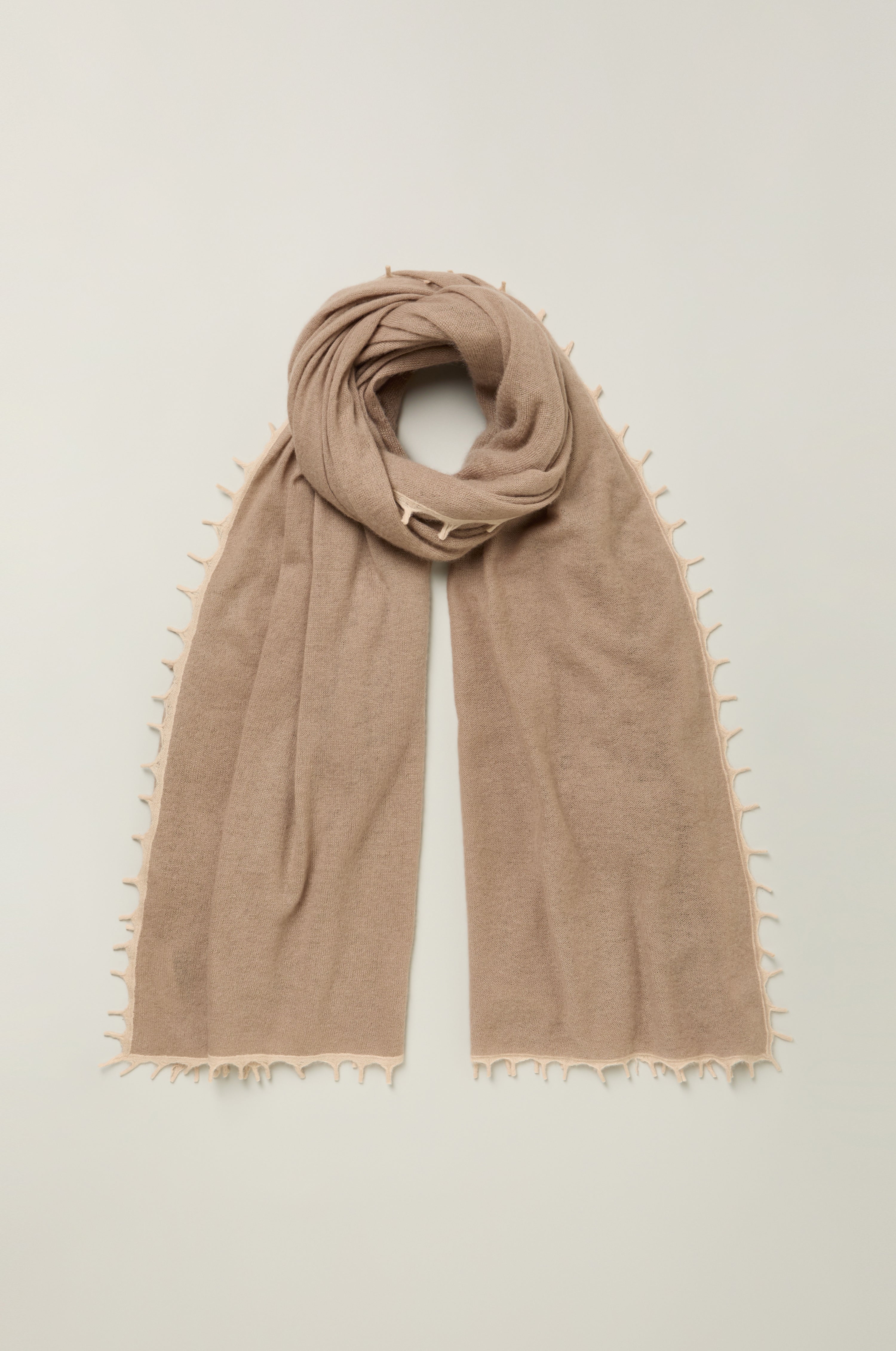 Timeless and versatile, this luxury scarf can be draped over knitwear, layered with outerwear or styled with dresses to add understated elegance. A staple for any season, it embodies Sahara’s commitment to natural fibres and contemporary design.