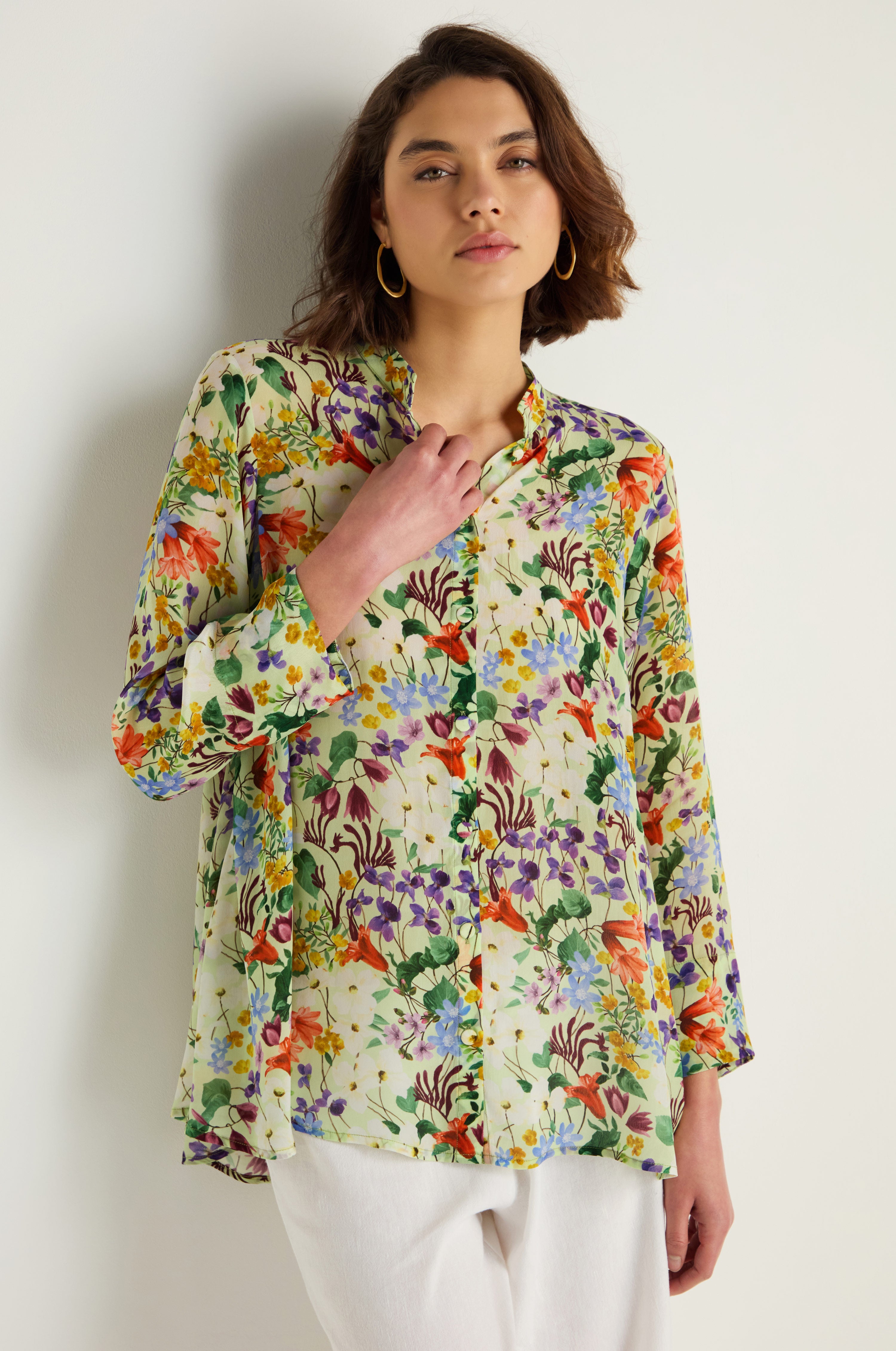 Yavi's Country Garden Cupro Shirt captures the label’s signature storytelling through print, blending vintage botanical references with a painterly, modern hand. With roots in India, Yavi is known for its art-led textiles and narrative prints, often inspired by travel, archives, and natural forms. The soft cupro blend drapes fluidly, giving the floral pattern an easy, lived-in elegance.