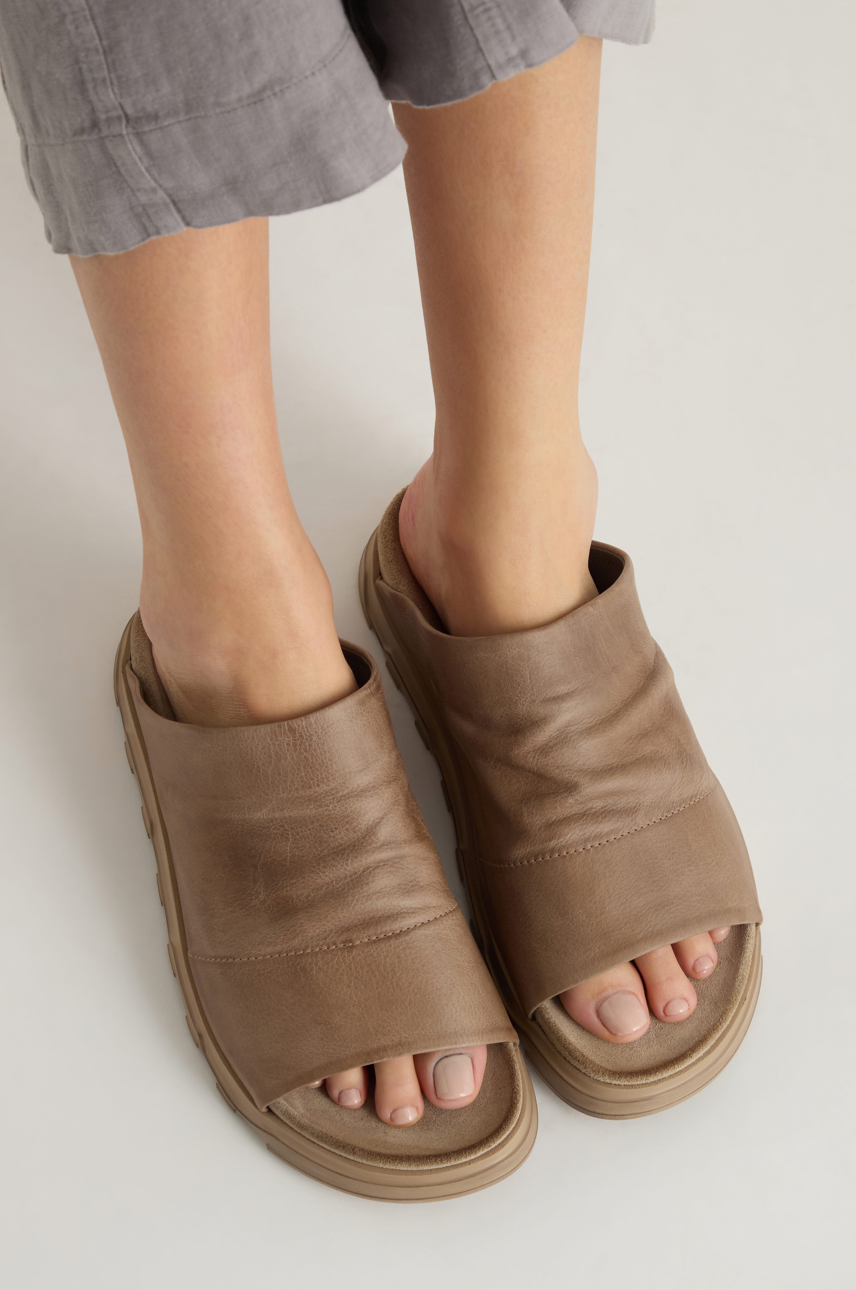 Elevate your everyday style with the Crushed Leather Sliders by Lofina. Designed in Denmark and crafted in Italy from soft leather with a ruched upper, they combine effortless luxury with all-day comfort. We love the distinctive allure of Lofina shoes, where intentional distressing adds character and charm to each pair. Every artfully placed scuff and mark tells a story of lived-in luxury.
