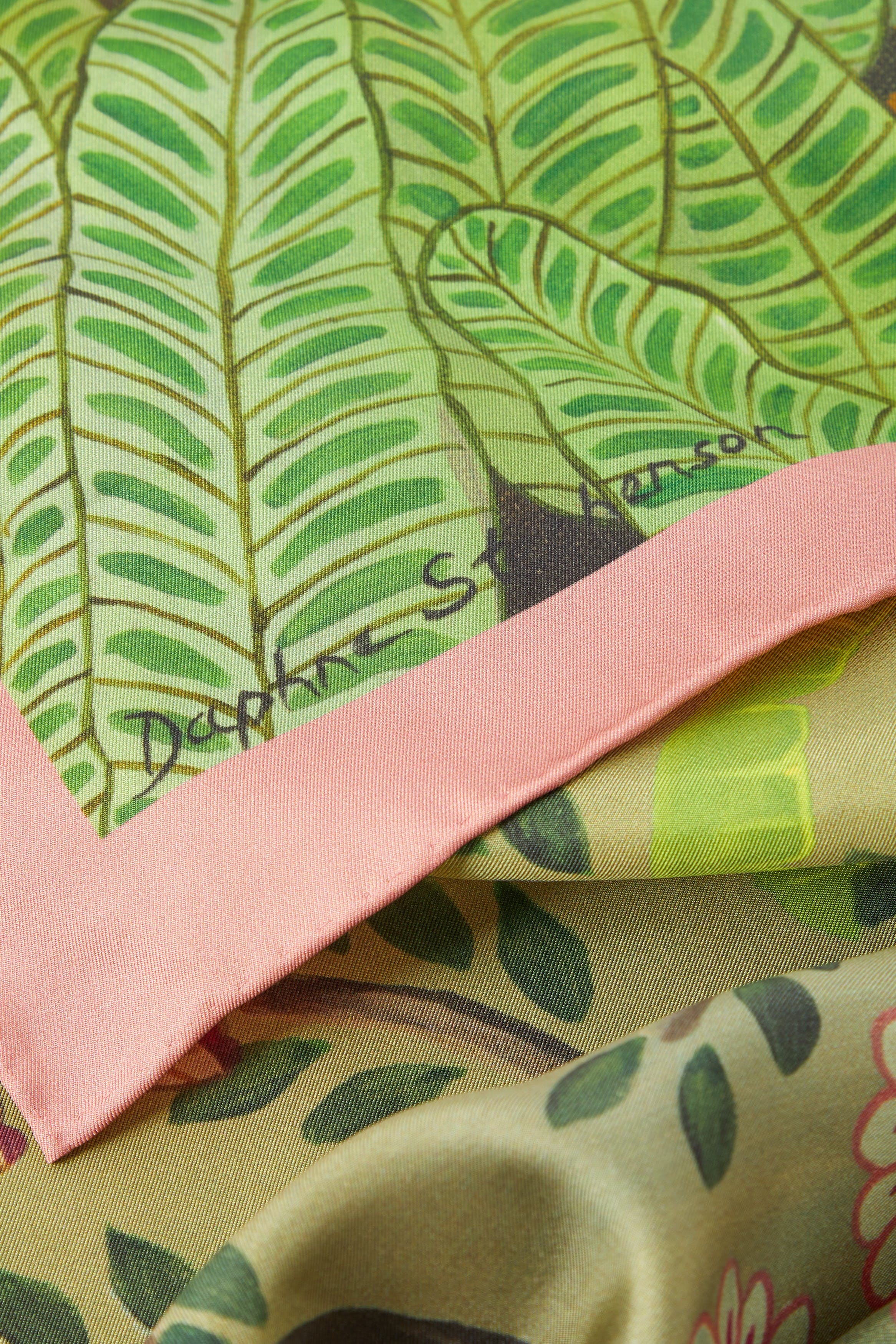 Inspired by her early years living in Pakistan, as well as her travels across India, Africa and the Caribbean, artist Daphne paints exotic tropical scenes, leopards, birds of paradise and lush vegetation. This exclusive capsule collection of 100% Silk Twill scarves adorned with prints from the artist are designed in England and made of ethically sourced materials. Each large scarf is printed on both sides for a truly luxurious object that can be cherished forever.