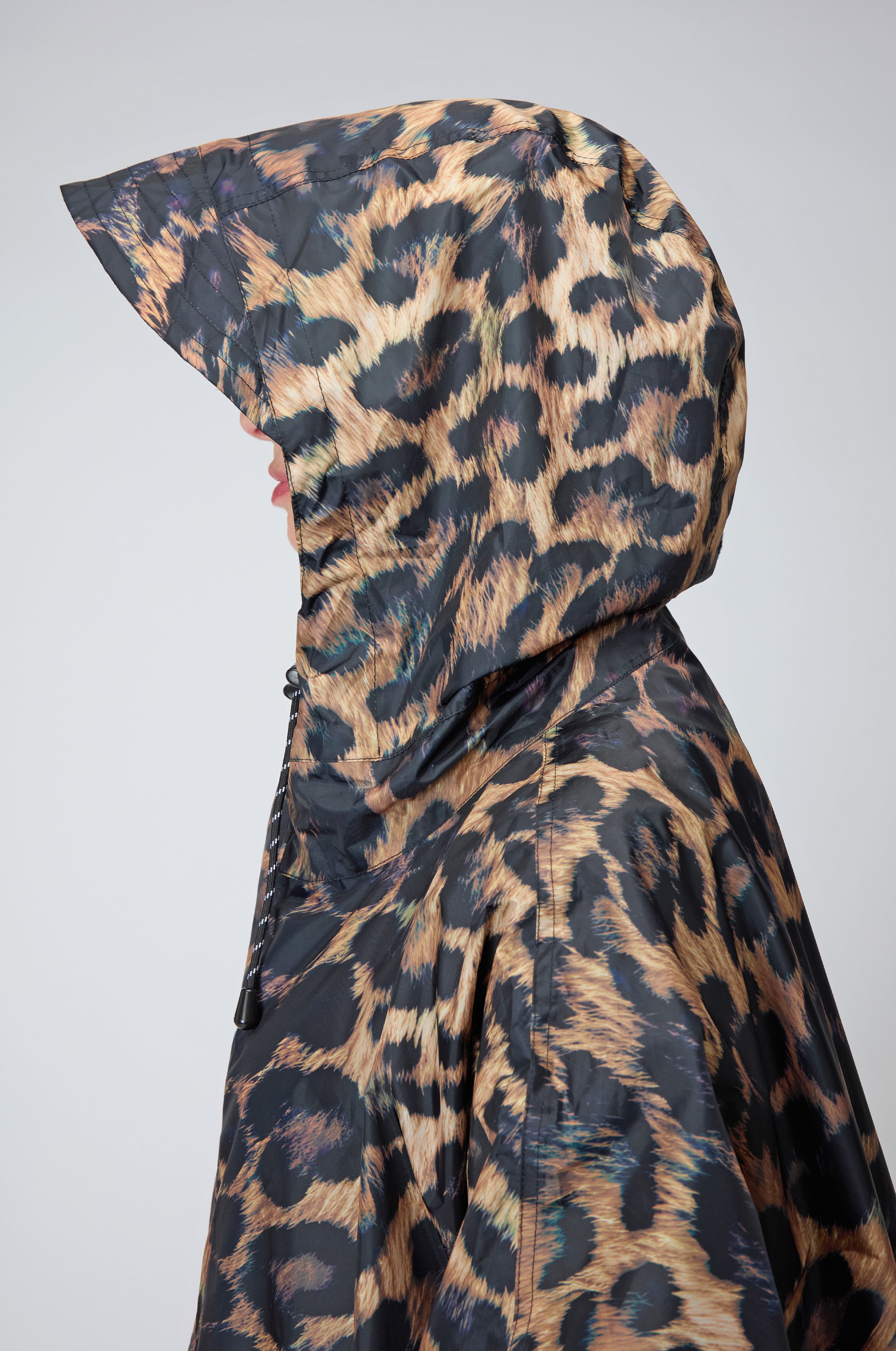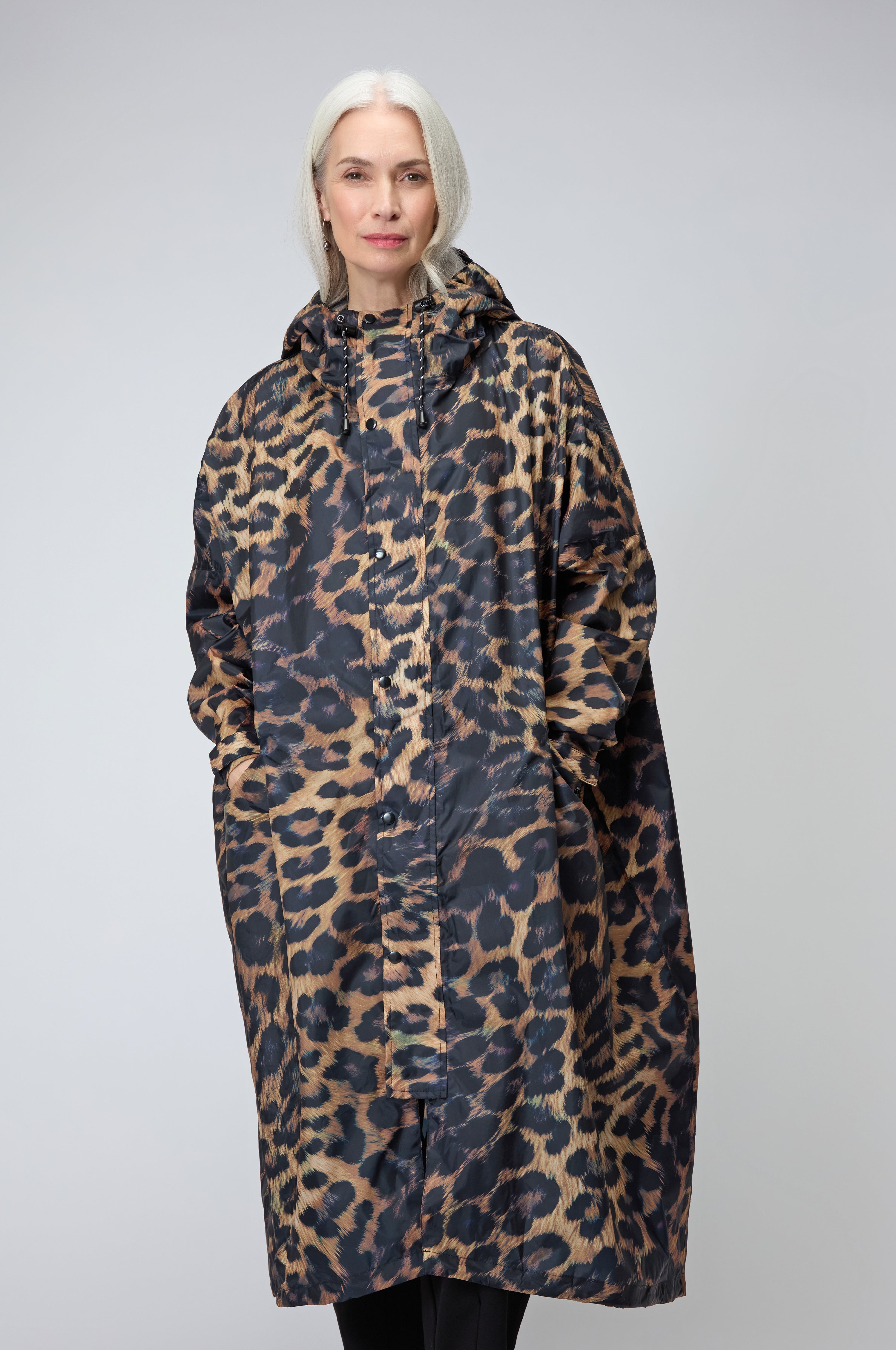 The Rainkiss Dark Leopard Rain Coat brings boldness to grey-sky days. Its deep black and rich chocolate brown tones layer into a striking animal pattern, combining elegance with wild energy. Lightweight, breathable, and waterproof, the design is made entirely from recycled polyester and finished with a PFAS-free coating for eco-conscious protection.