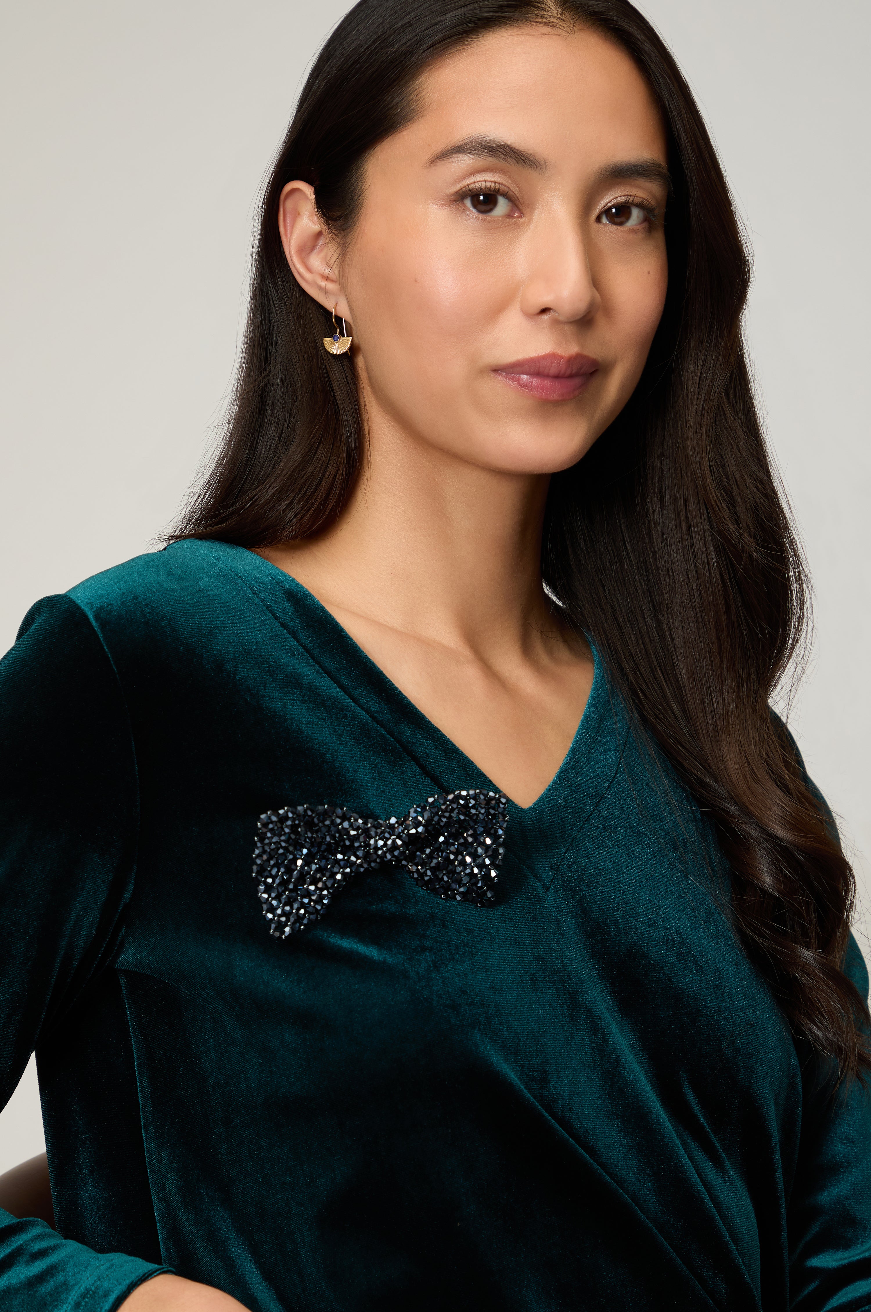 The Sahara Hand Beaded Bow Tie Brooch is a modern twist on classic embellishment. With its sharper silhouette, it offers a more tailored aesthetic, while its intricate beadwork ensures it still delivers sparkle and texture.