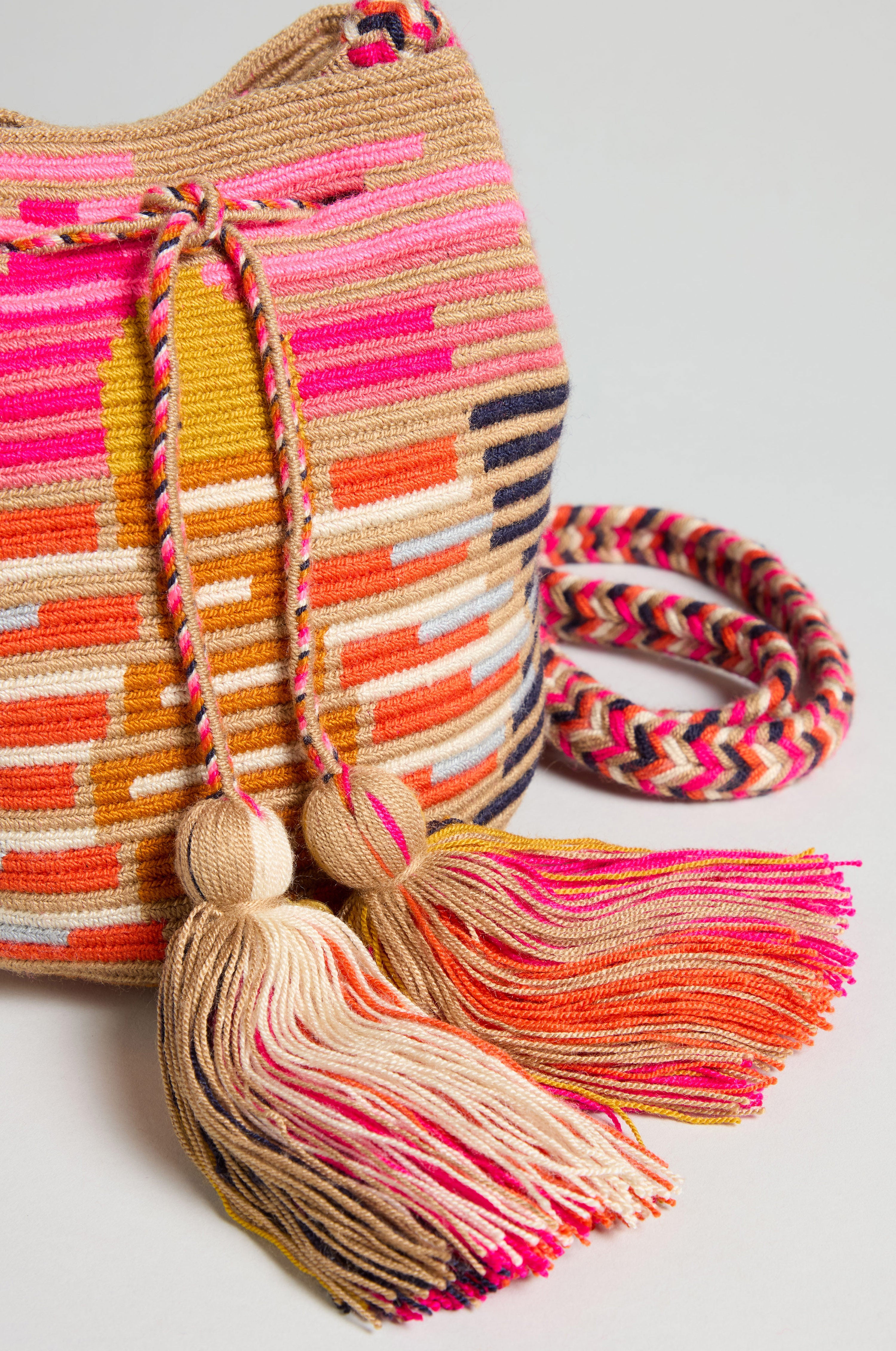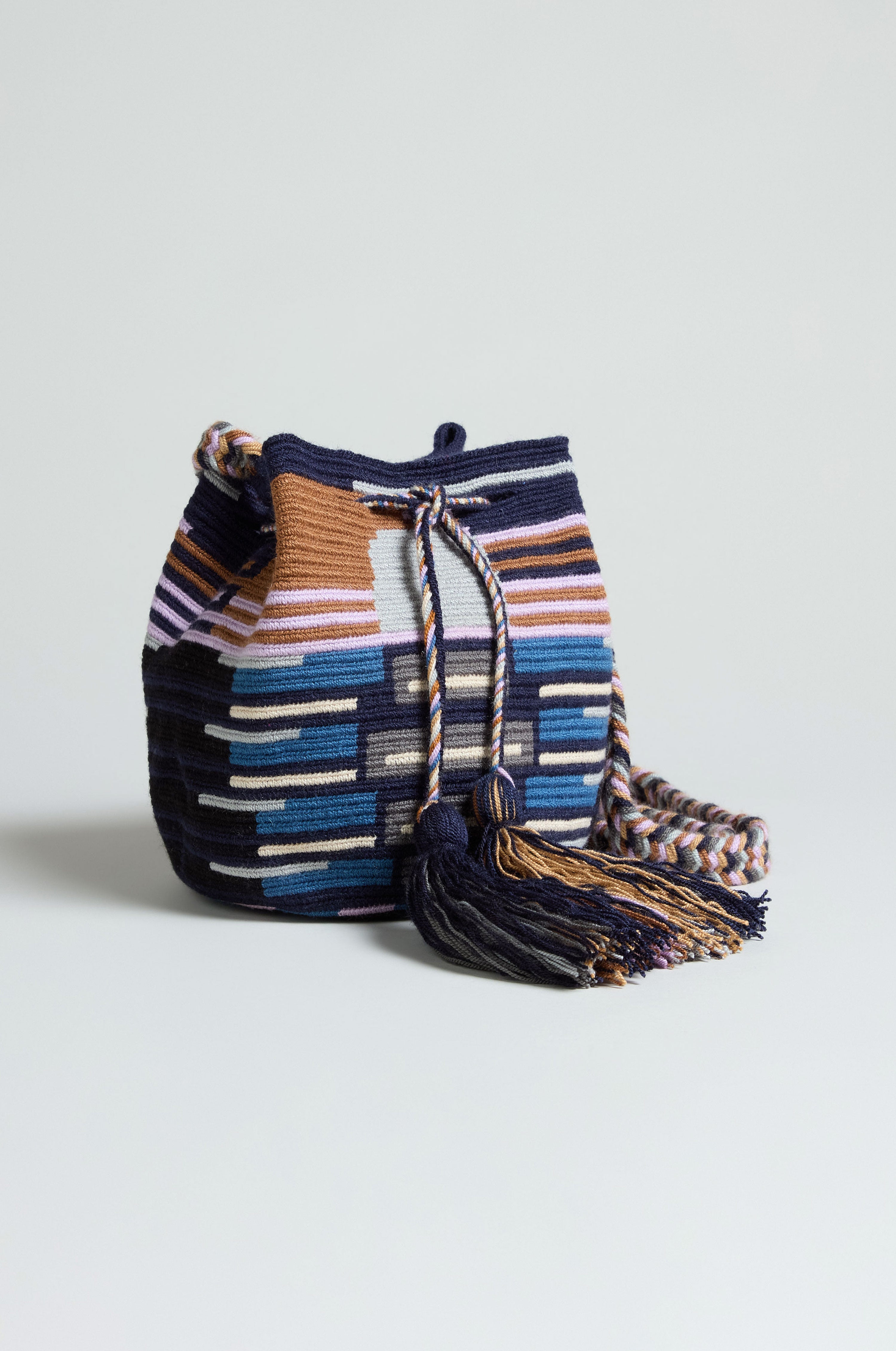 The Handcrafted Crossbody Tassel Bag combines sophisticated design with a subtle boho influence. Its striped pattern and elegant tassel details bring a vibrant yet tasteful accent to your look. This refined accessory is designed to securely hold your essentials, ensuring they’re always within easy reach while enhancing your outfit with effortless style.