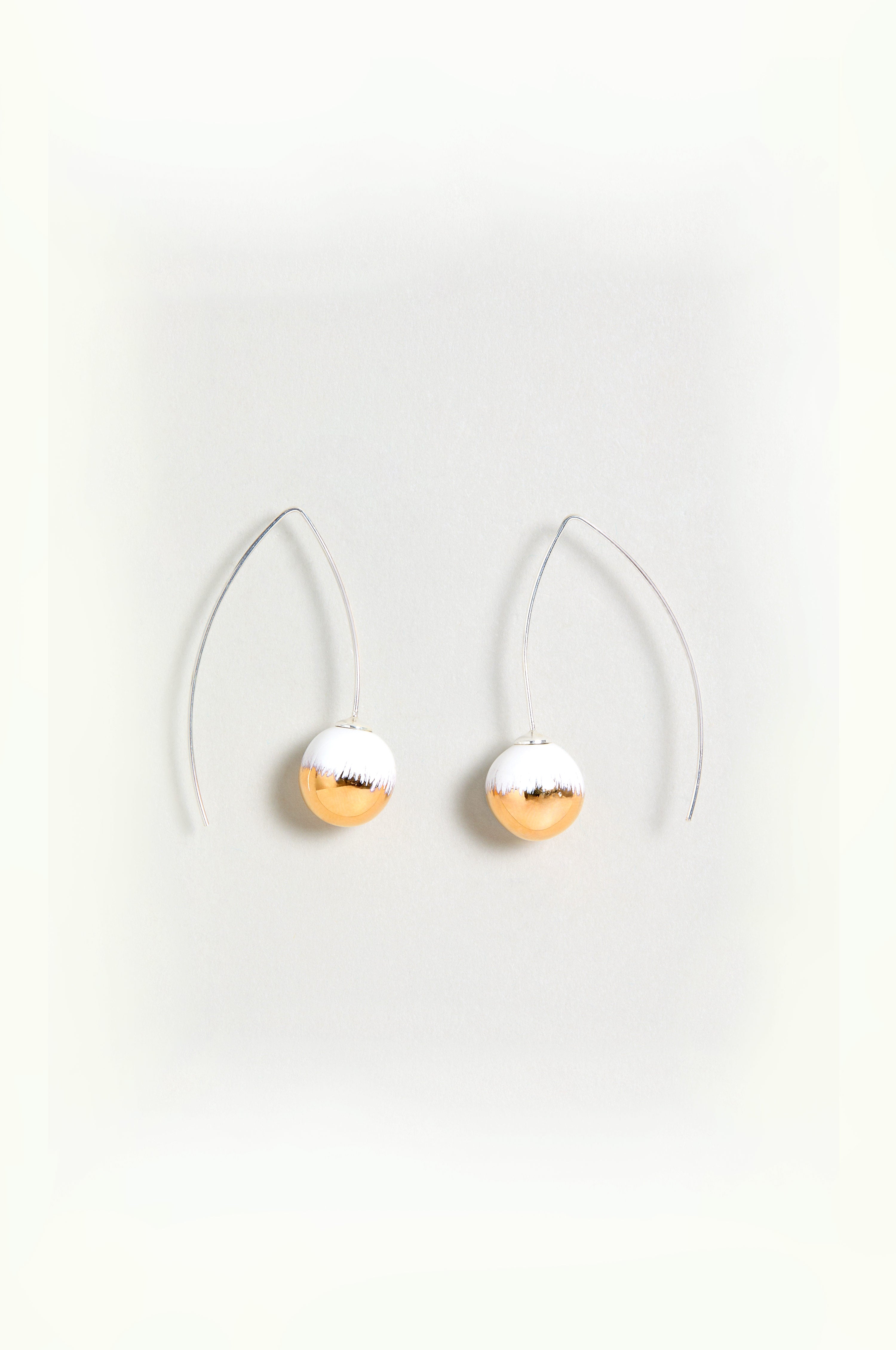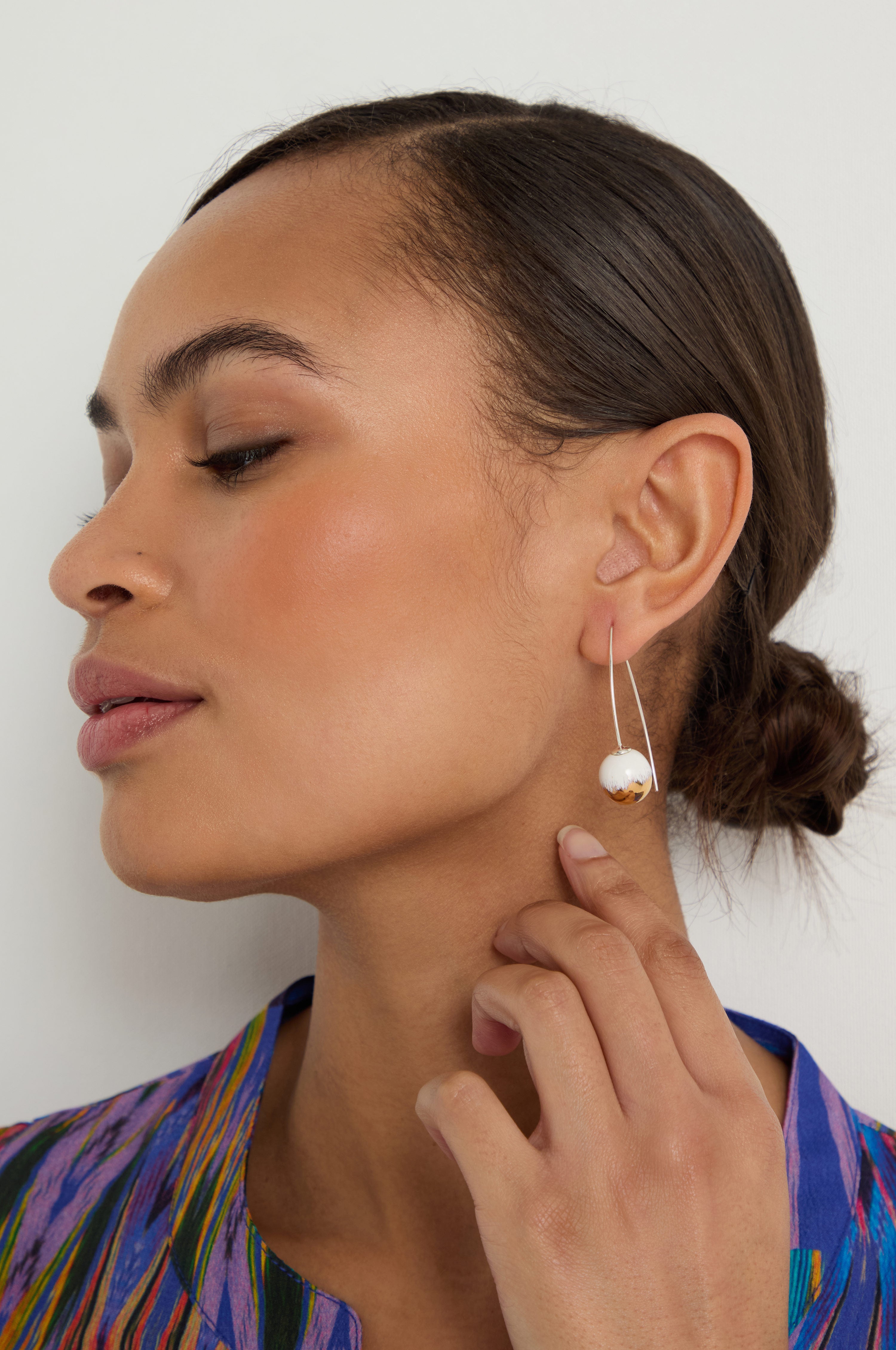The Gevole Handmade Gold Brushstroke Ceramic Bead Earrings marry architectural modernity with metallic glamour. Hand-painted white ceramic beads meet gold detailing, finished with silver fittings. Designed to add interest without overpowering.