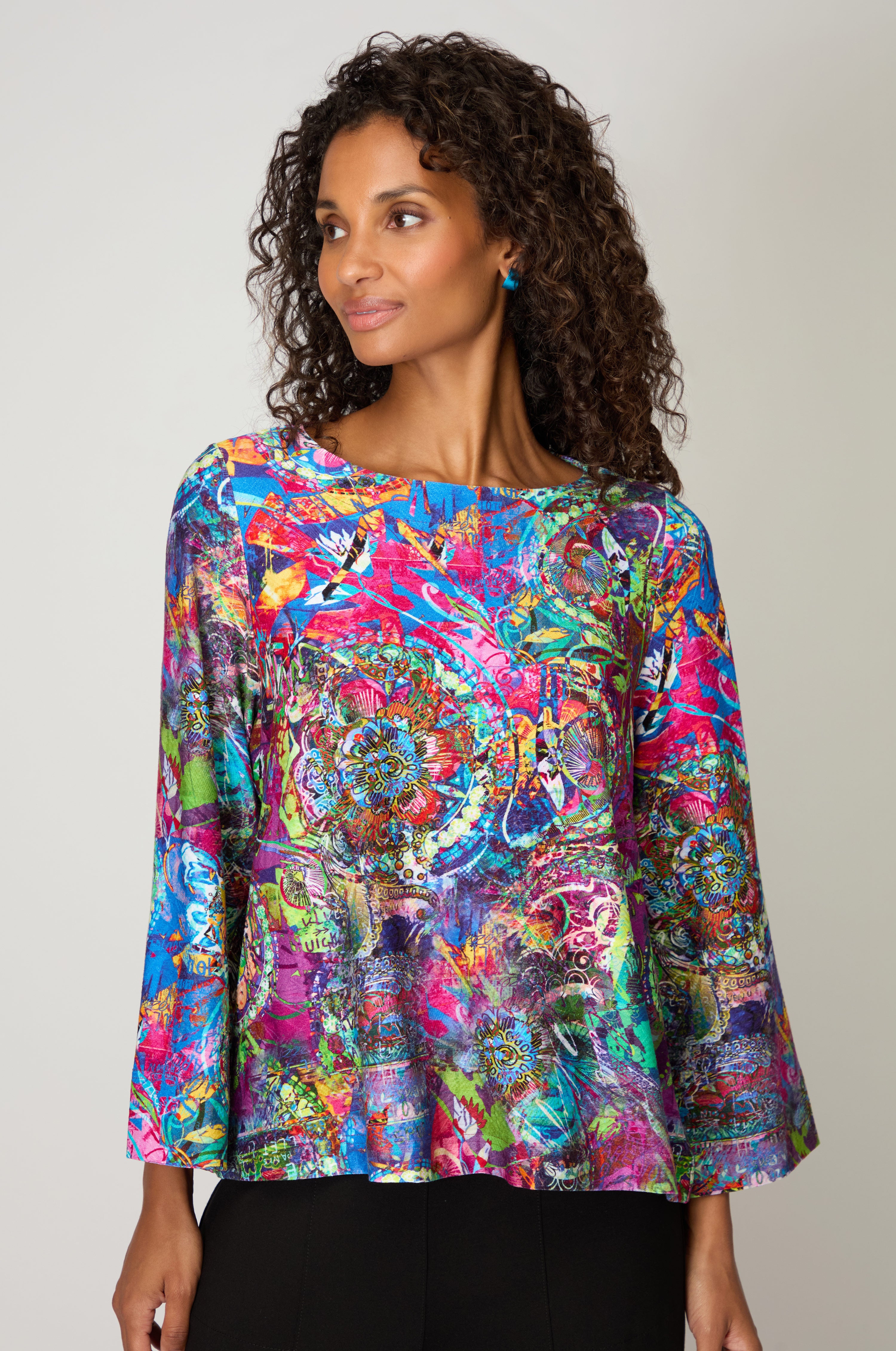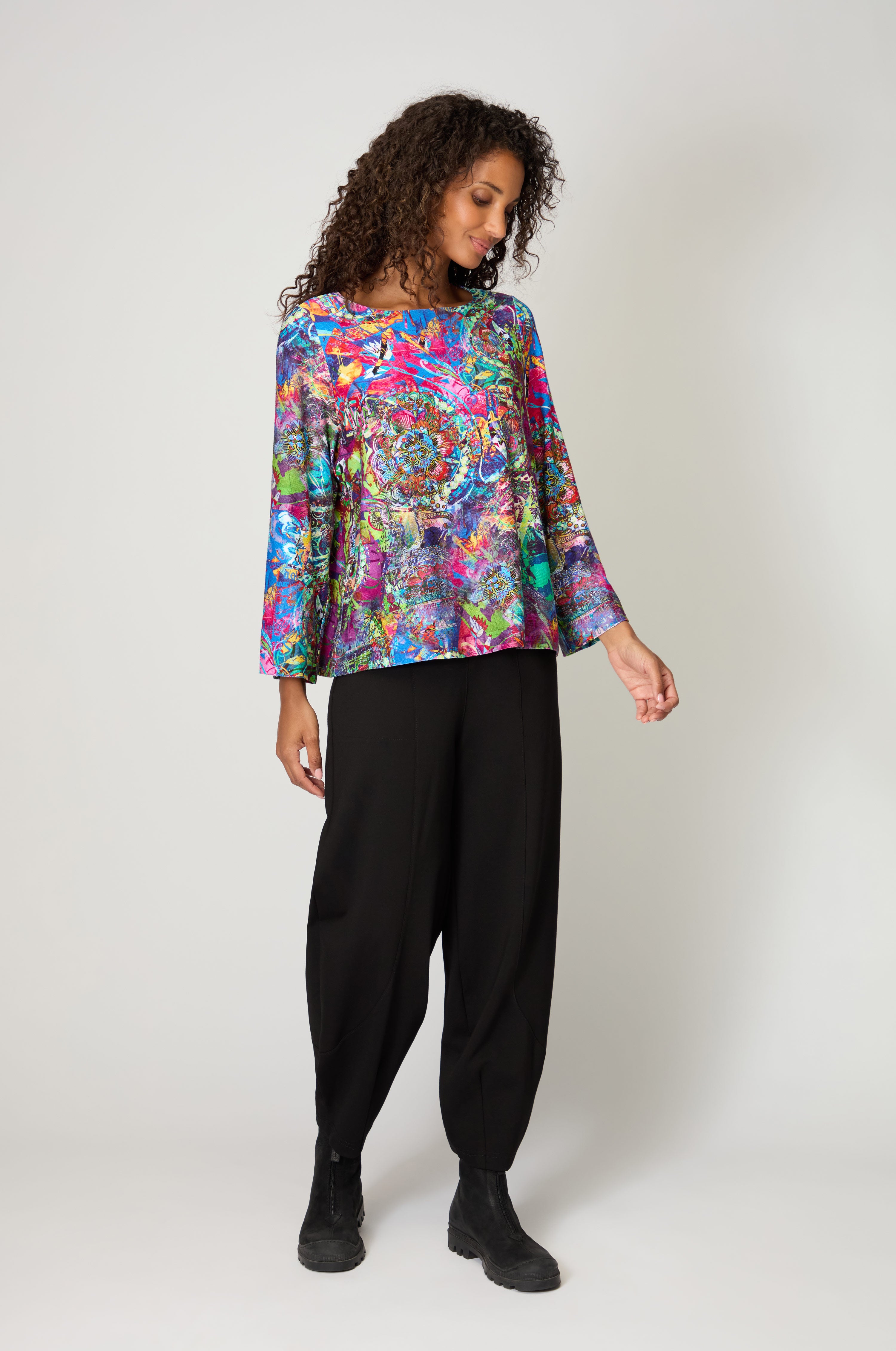 The Aino Jane Abstract Floral Jersey Top is a vibrant layering piece with expressive charm. The smooth jersey fabric allows the abstract floral print to display its rich colour, while the natural stretch ensures comfort. A simple neckline and relaxed cut keep the shape versatile, letting the print remain the centrepiece.