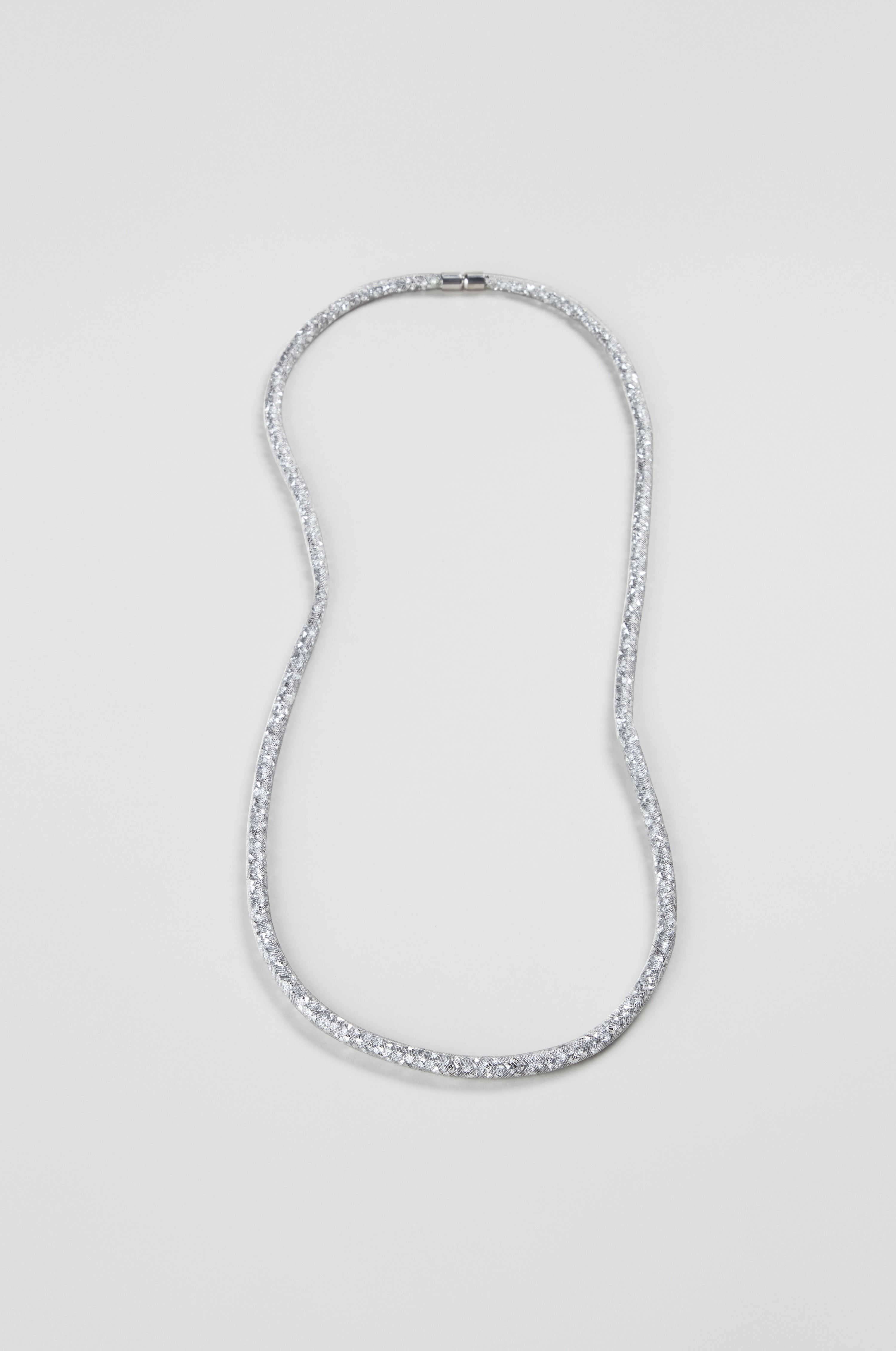 The Sahara Long Diamante Necklace brings a note of radiance to both casual and evening styling. Crafted with a fluid rope-like design, it is densely set with sparkling diamante that catches the light from every angle. Its longline shape allows for versatile wear: draped loosely for a sleek silhouette, or doubled for a layered effect that frames the neckline beautifully.