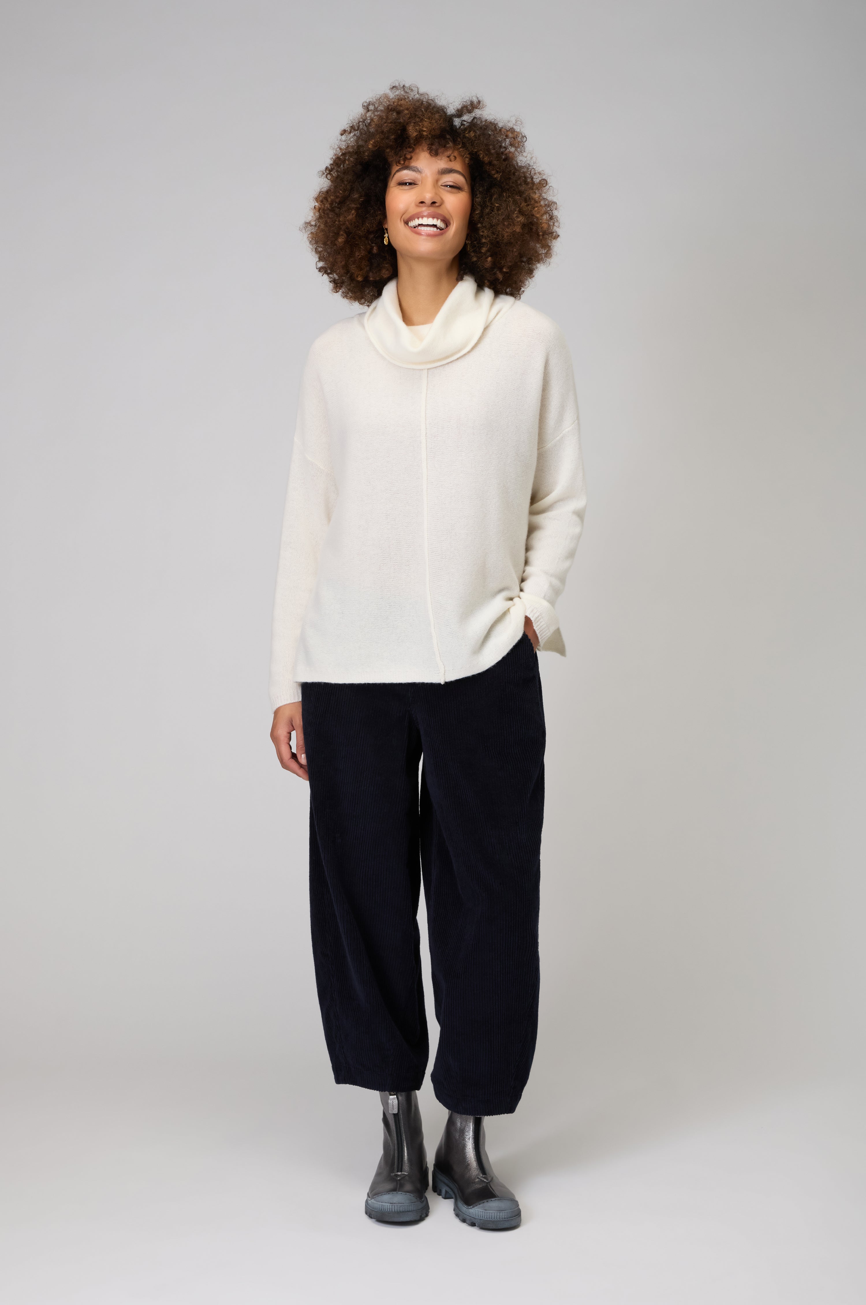The Sahara Merino Wool Cowl Neck Jumper is a refined piece of women’s luxury knitwear, combining exceptional comfort with understated style. Knitted from fine merino wool, this soft wool jumper drapes beautifully, featuring a generous cowl neckline, full-length sleeves and a subtle centre seam that enhances its relaxed yet flattering silhouette. Designed to feel lightweight, breathable and warm, it brings effortless sophistication to everyday dressing.
