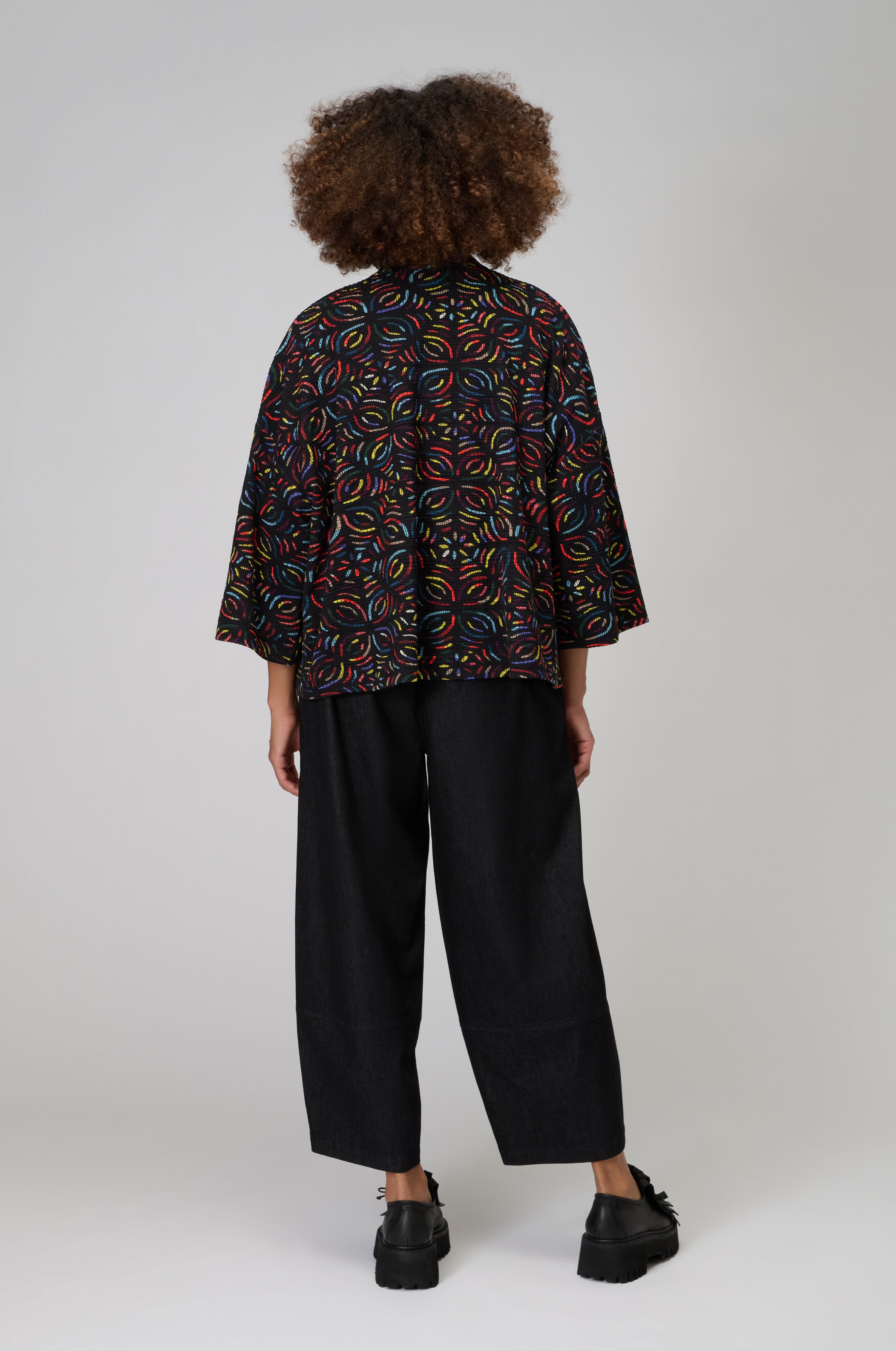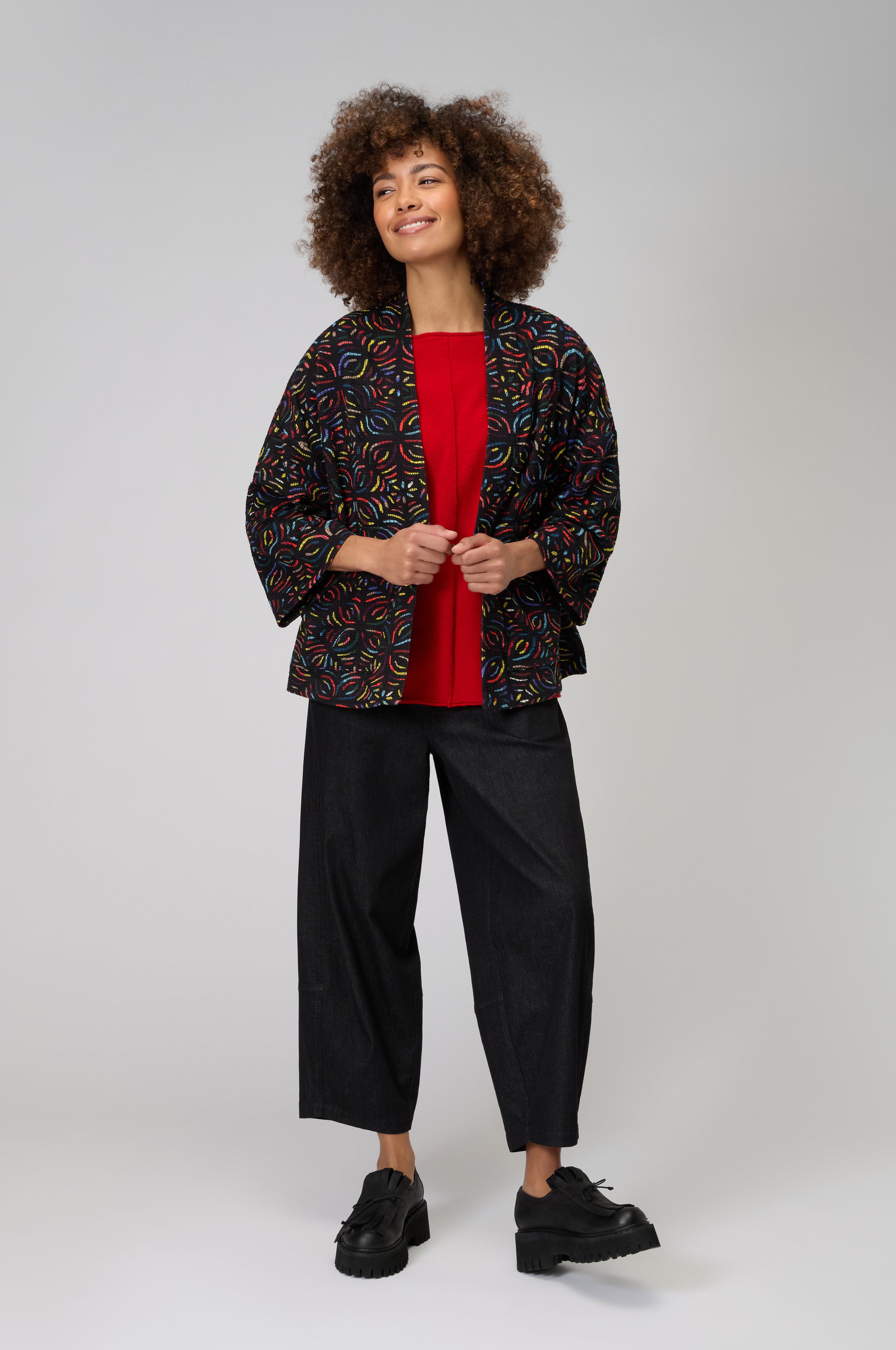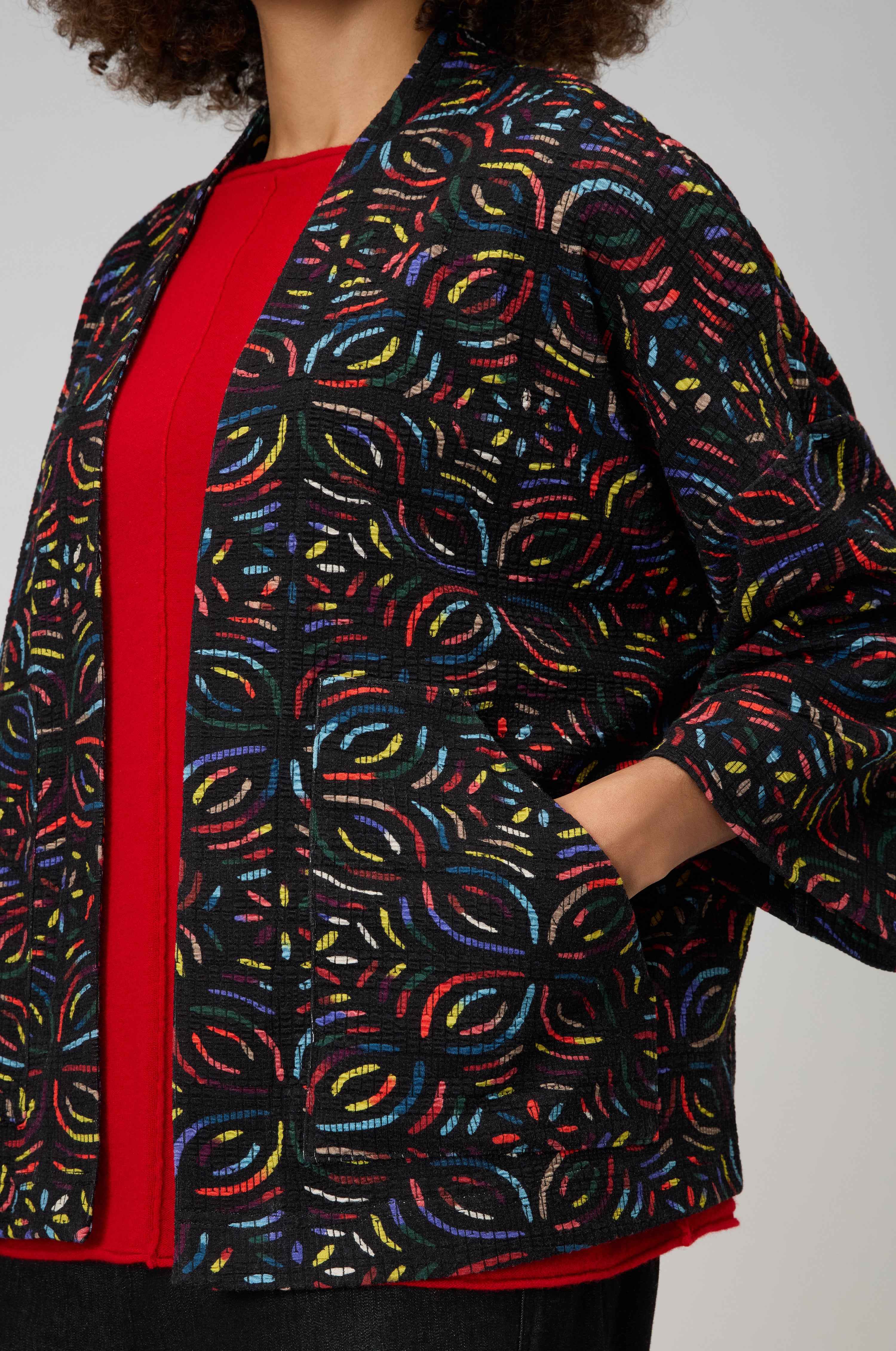 The Sahara Mosaic Jacquard Jersey Jacket is cut from soft textured jacquard jersey with a warm, substantial feel. Its kimono-inspired shape features a three-quarter sleeve and edge-to-edge front, giving the piece an elegant sense of ease.