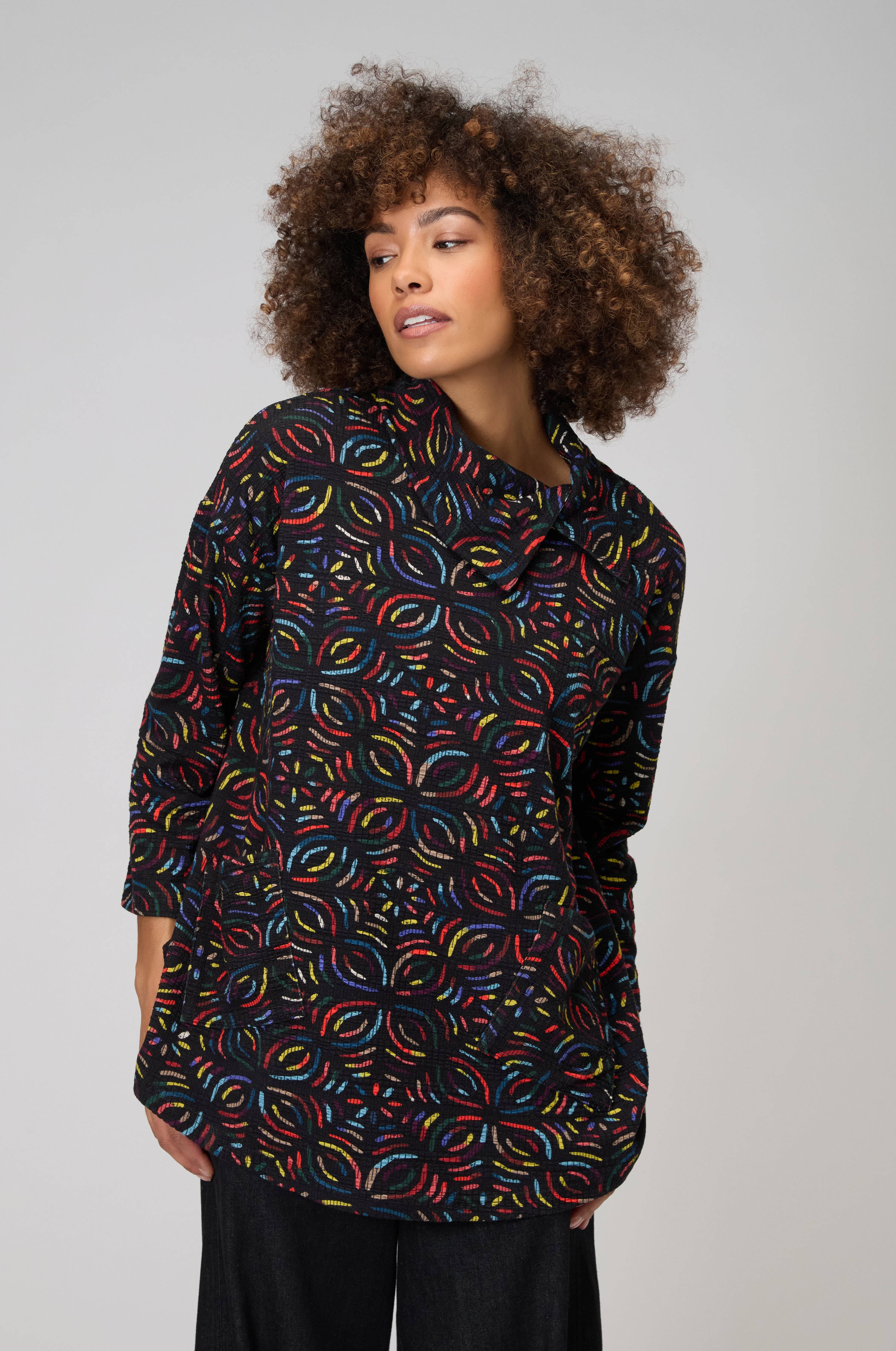 Front patch pockets lend utility and charm to the simple shape, designed to layer effortlessly with coordinating pieces. This top’s mosaic design and tactile finish capture Sahara’s approach to thoughtful texture and timeless comfort.