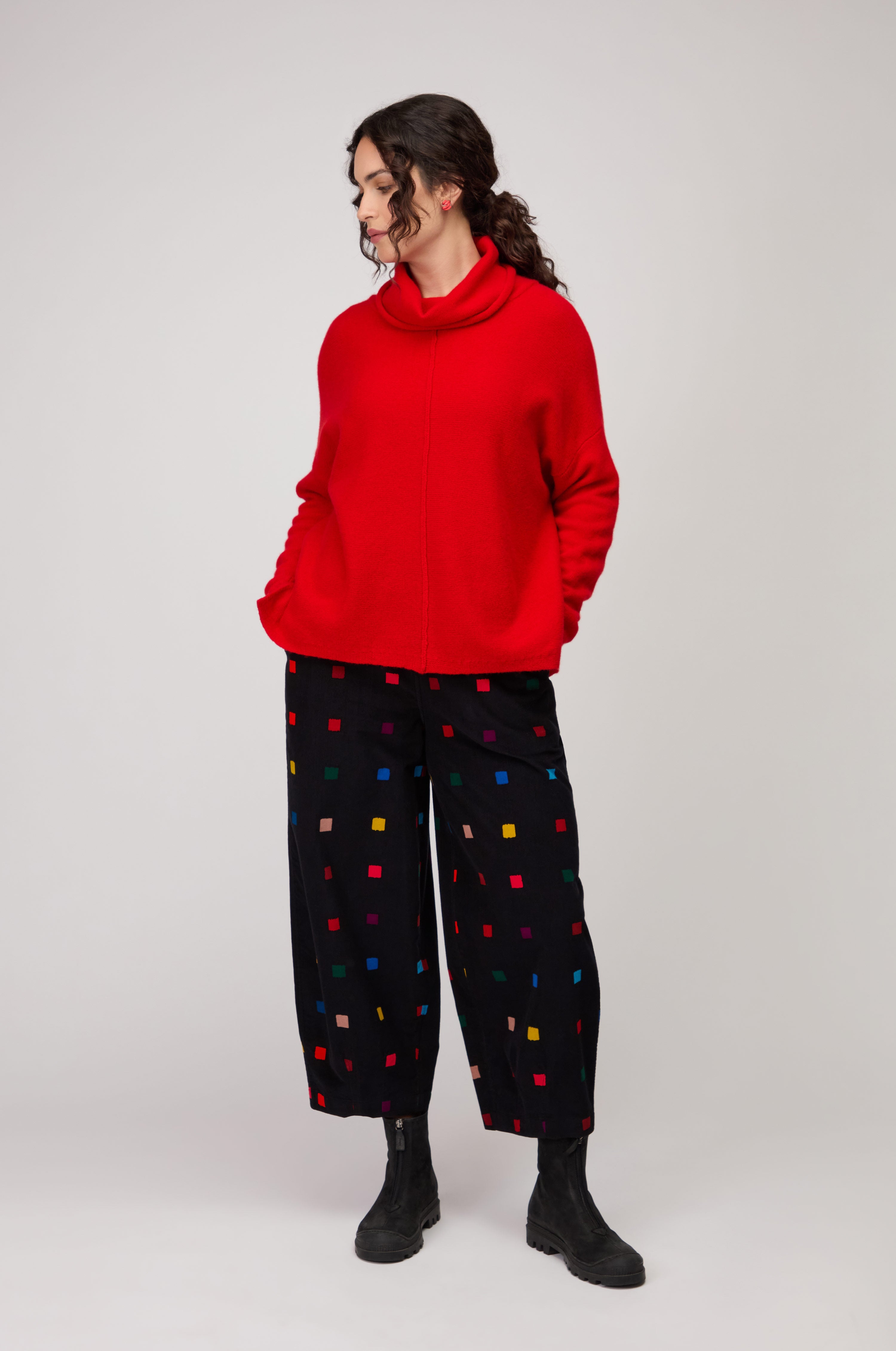 Side pockets offer convenience without sacrificing a smooth finish, and subtle panel lines create gentle shaping across the leg. The result is a relaxed yet considered style that pairs perfectly with the matching shirt or simple knitwear, offering colour, comfort and form in one.