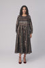 Practical side seam pockets add ease and functionality to this ankle-grazing dress. Perfect for transitional seasons, it combines sophisticated detail with wearable elegance, making it a versatile choice for both daytime and evening occasions.