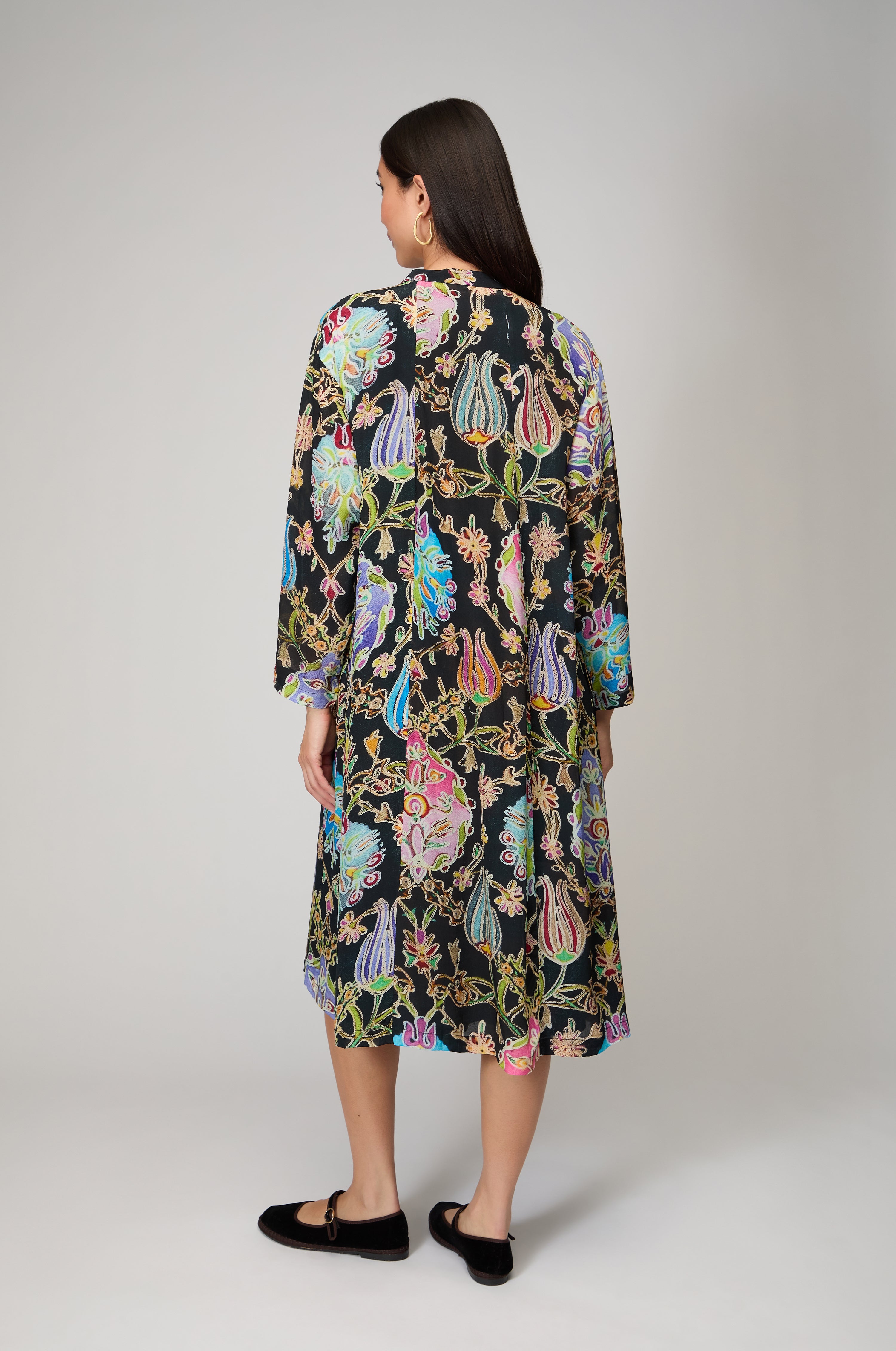 This is a statement piece for those who love colour and pattern but value wearability. Whether with boots for day or heels for evening, it embodies Yavi’s philosophy of fashion as art for everyday life.