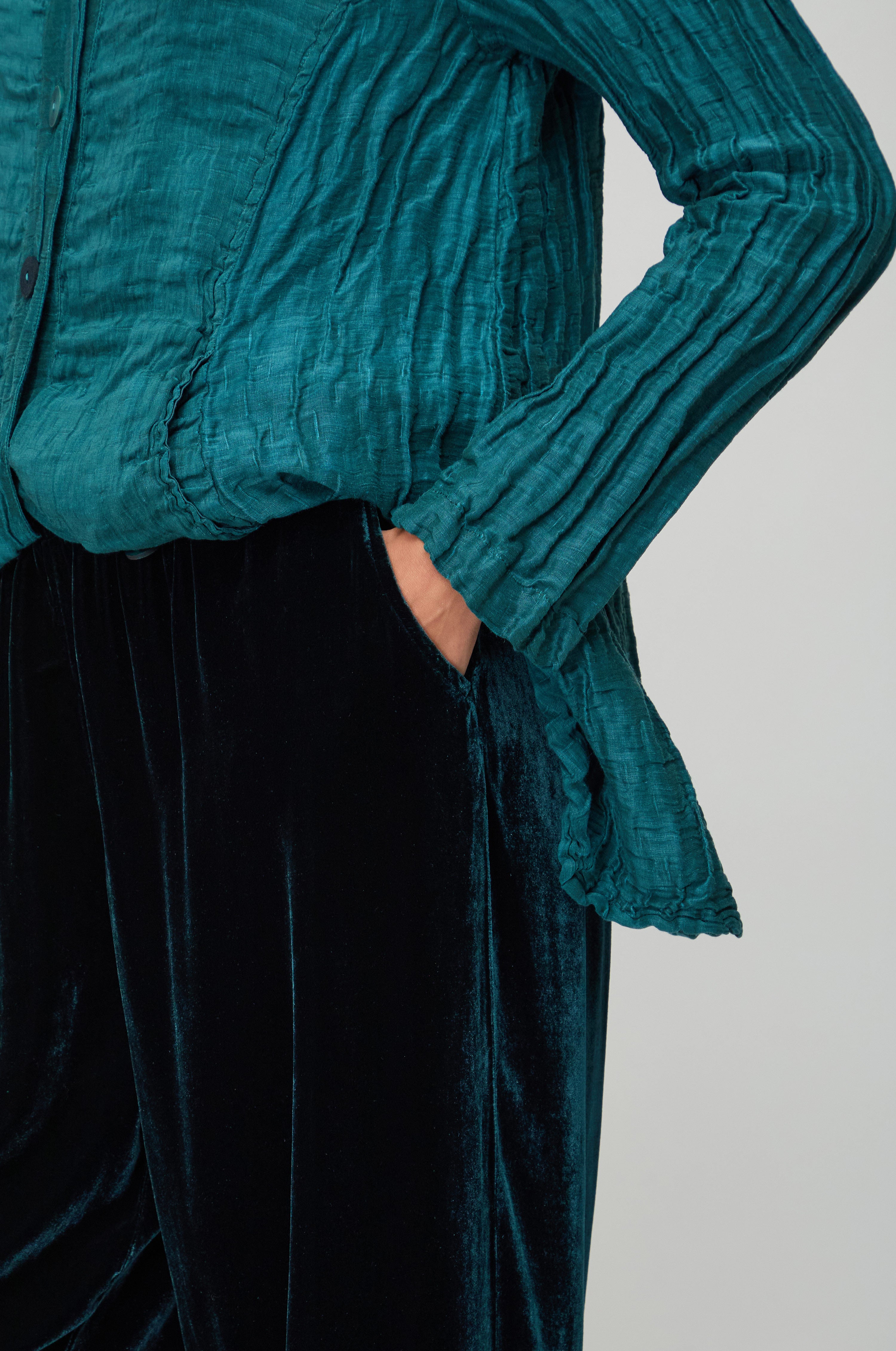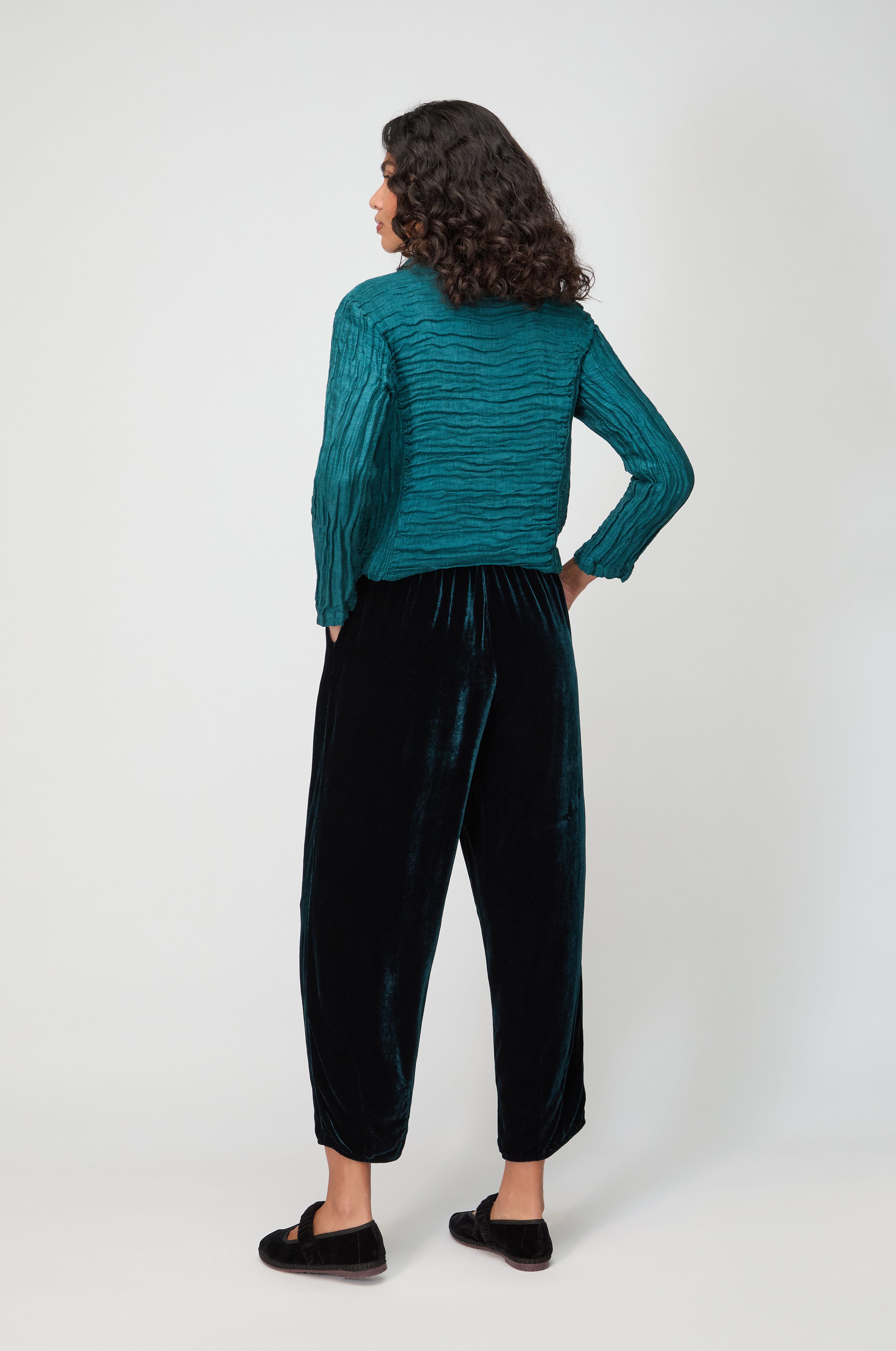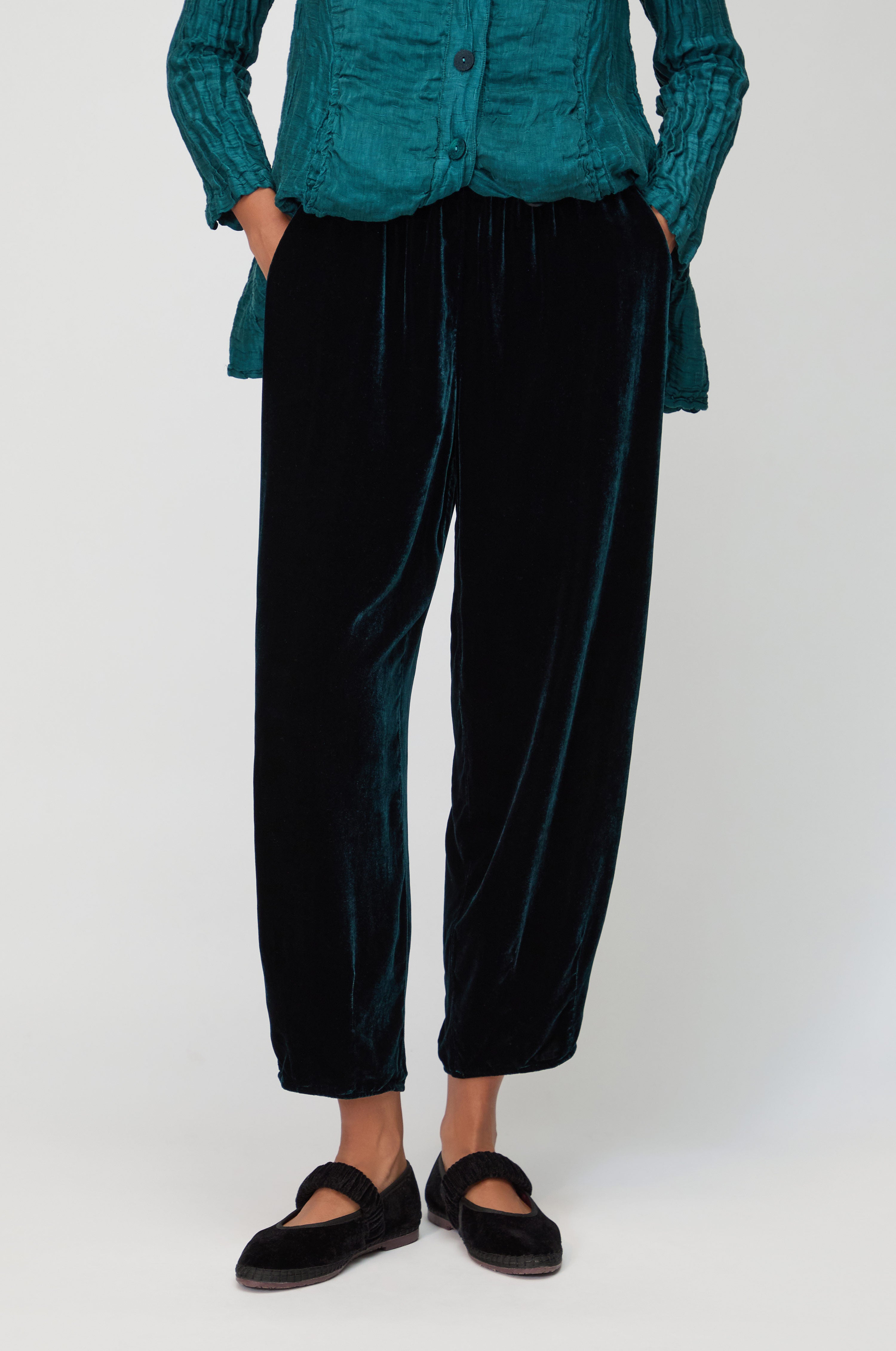 Designed to move seamlessly between day and evening, these trousers are an anchor piece in any winter wardrobe. Pair with the matching velvet tops or jackets for a tonal ensemble, or contrast with textured knits and crisp shirts to let the richness of the velvet stand alone. The drape, colour saturation, and inherent luxury of silk velvet make this trouser a true investment piece - one that balances comfort with opulence in equal measure.