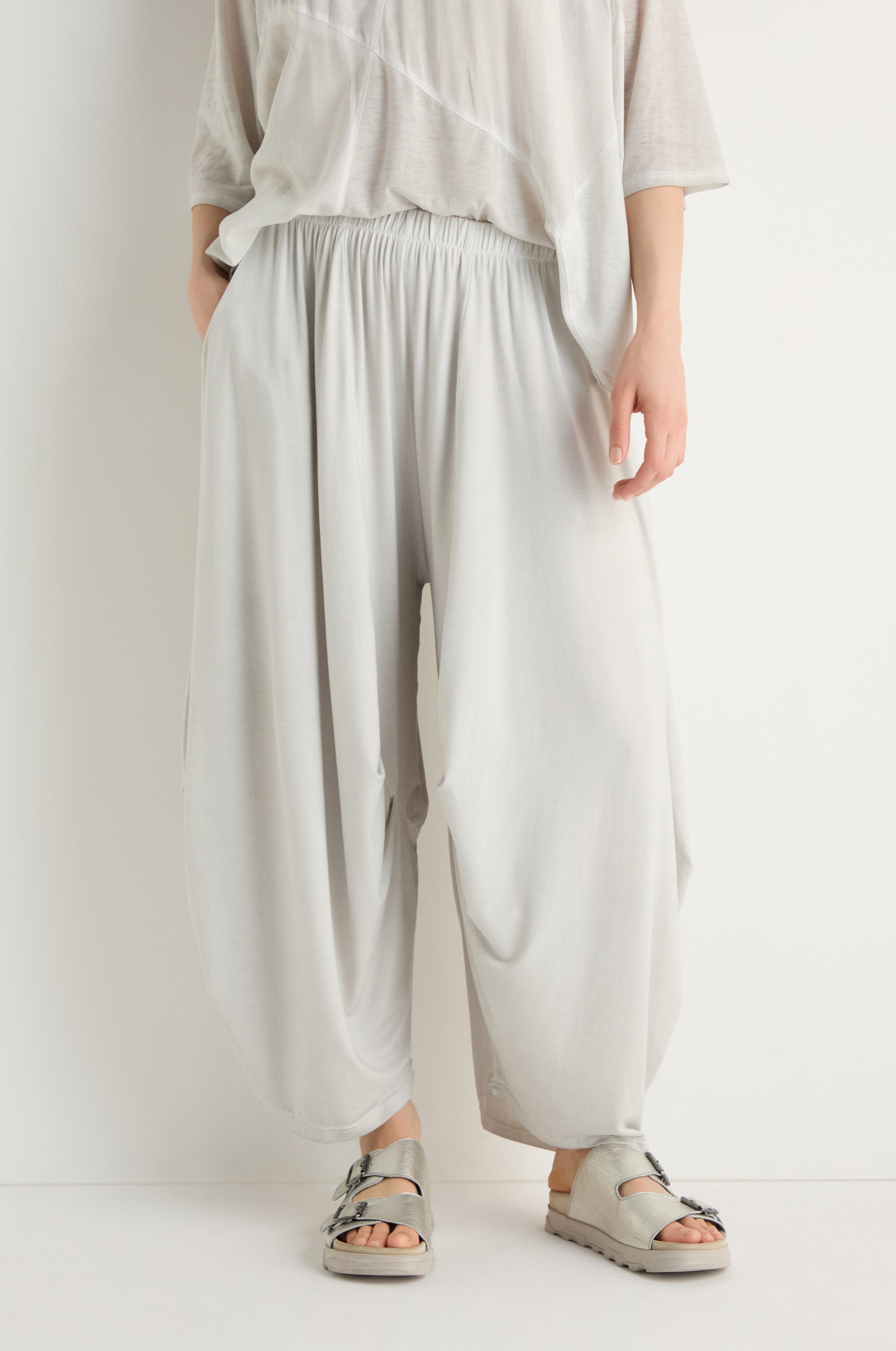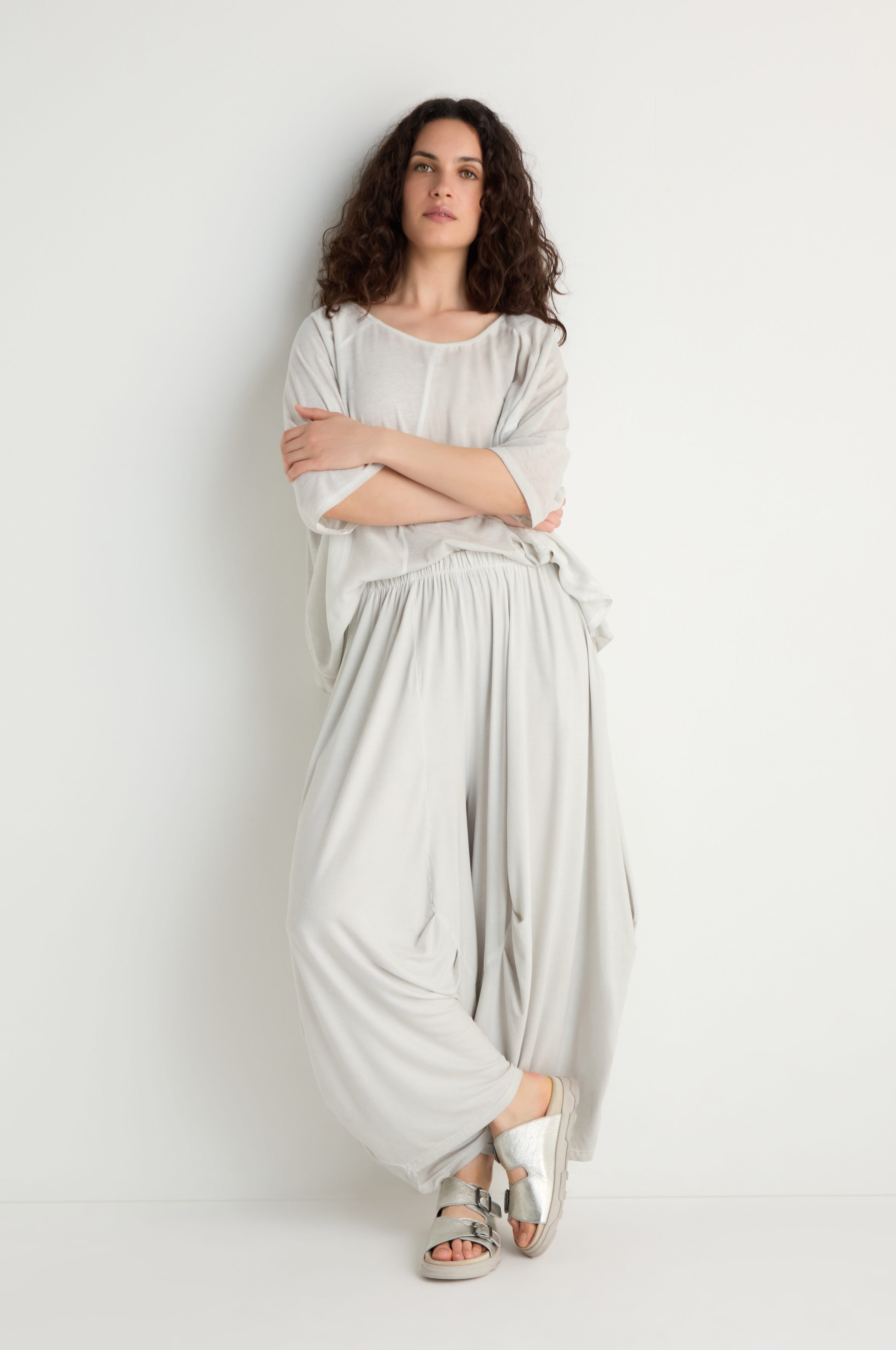 The Zilberman Soft Drape Jersey Trousers are designed for movement and comfort, with a fluid jersey that falls in soft folds and creates a sculptural, easy shape. The fabric has a gentle stretch that supports the silhouette while maintaining a relaxed, effortless feel throughout the day.