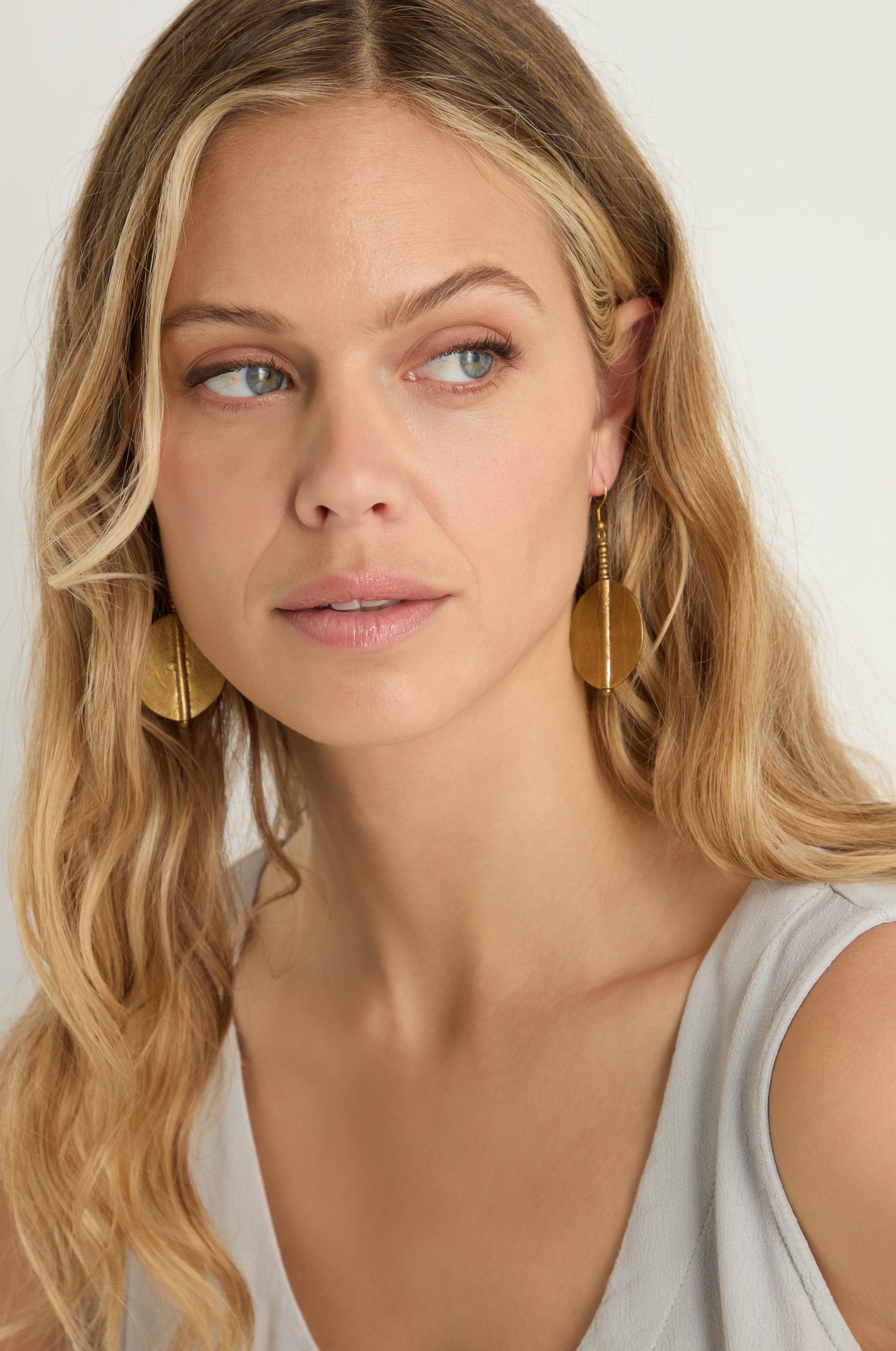 The Nataraj Collection Spiral Earrings are a bold expression of texture and form. Circular brass discs are etched with fine concentric spirals, intersected by a sculptural bar that adds structure and contrast. Striking yet balanced, they bring warmth and character to both everyday dressing and occasion wear.