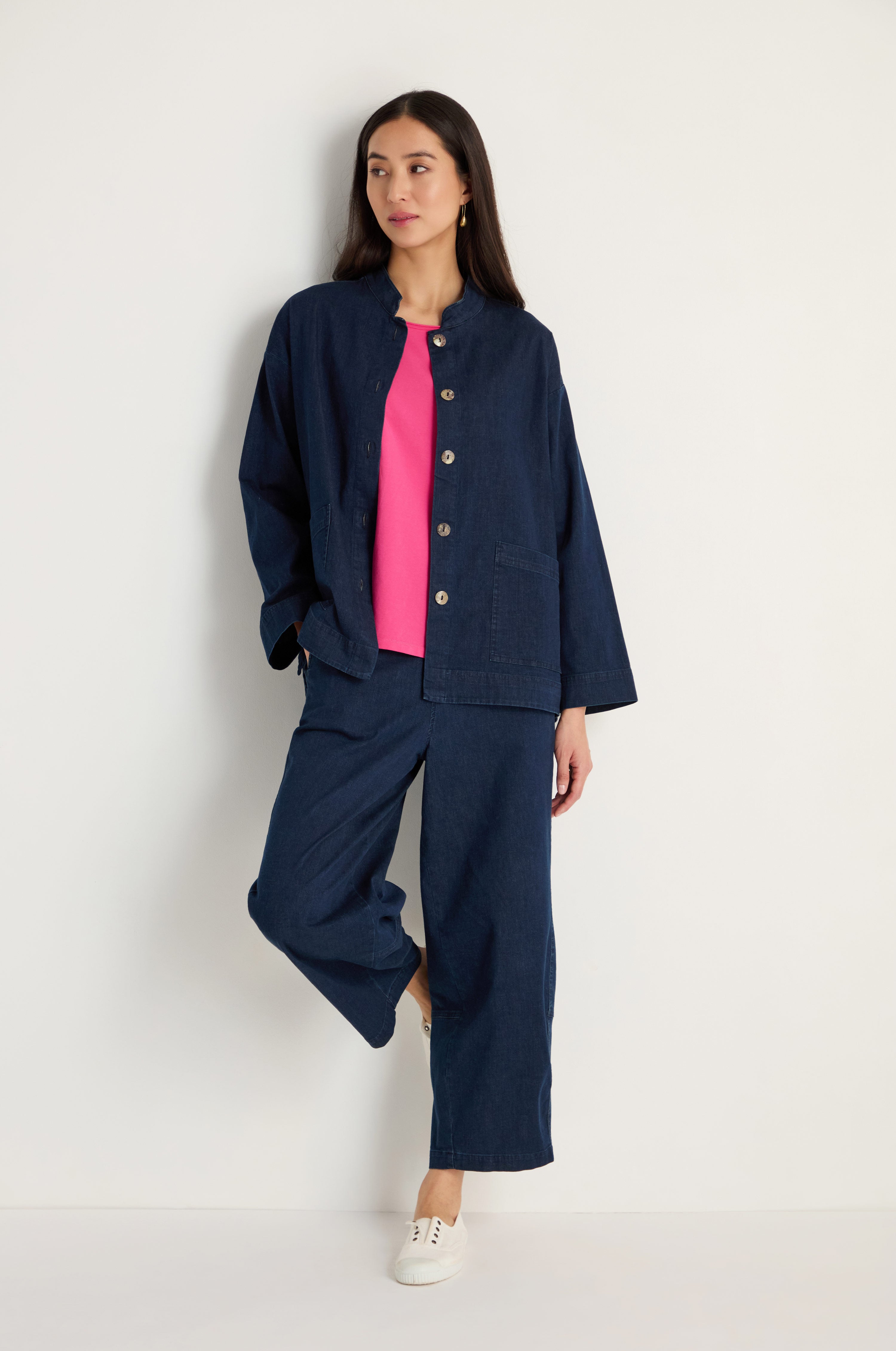 The Sahara Stretch Denim Boxy Jacket is a modern layering piece designed with a clean, relaxed shape and subtle structure. Easy to wear and versatile, it brings a contemporary edge to everyday outfits while remaining practical and comfortable.