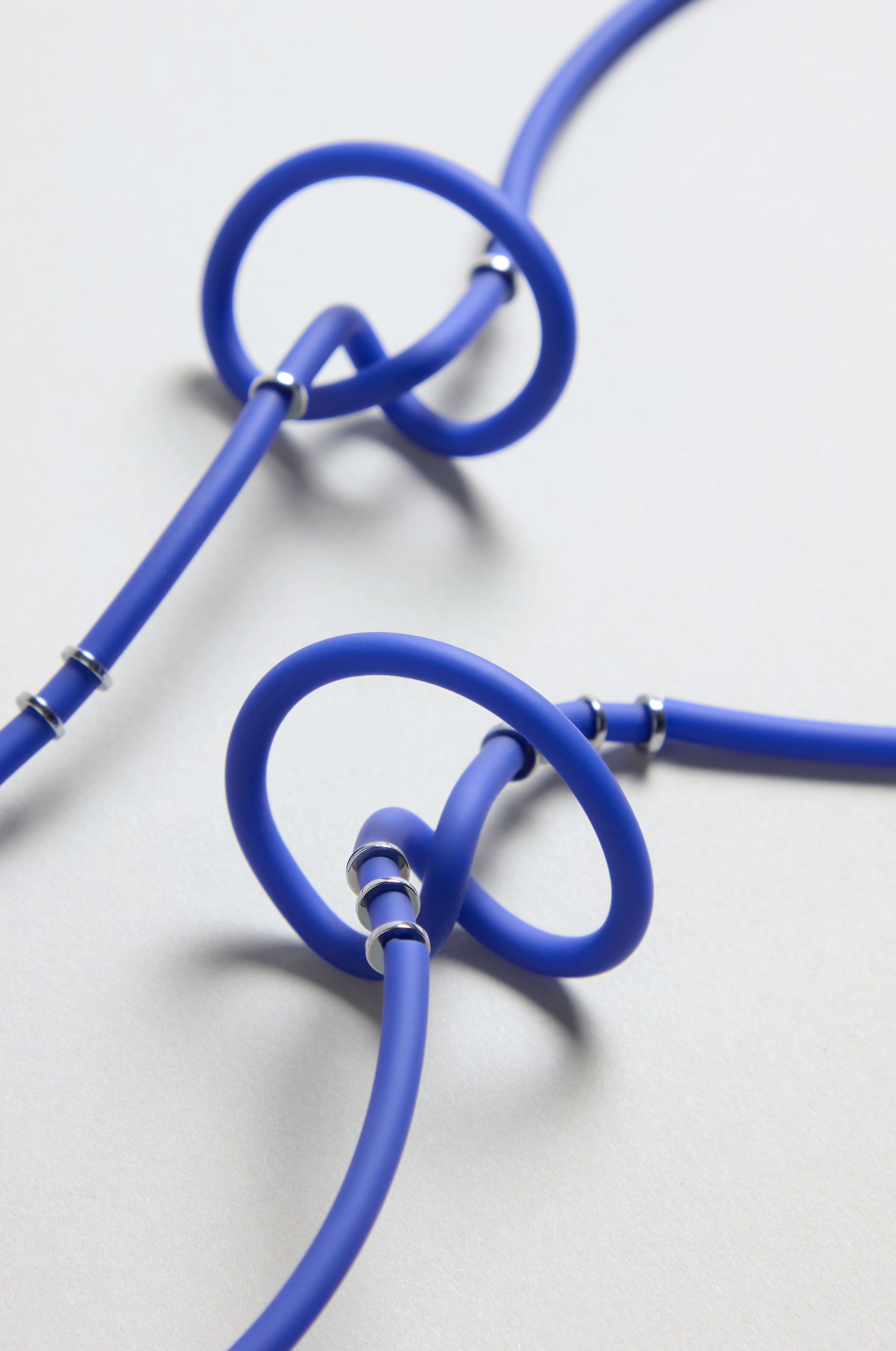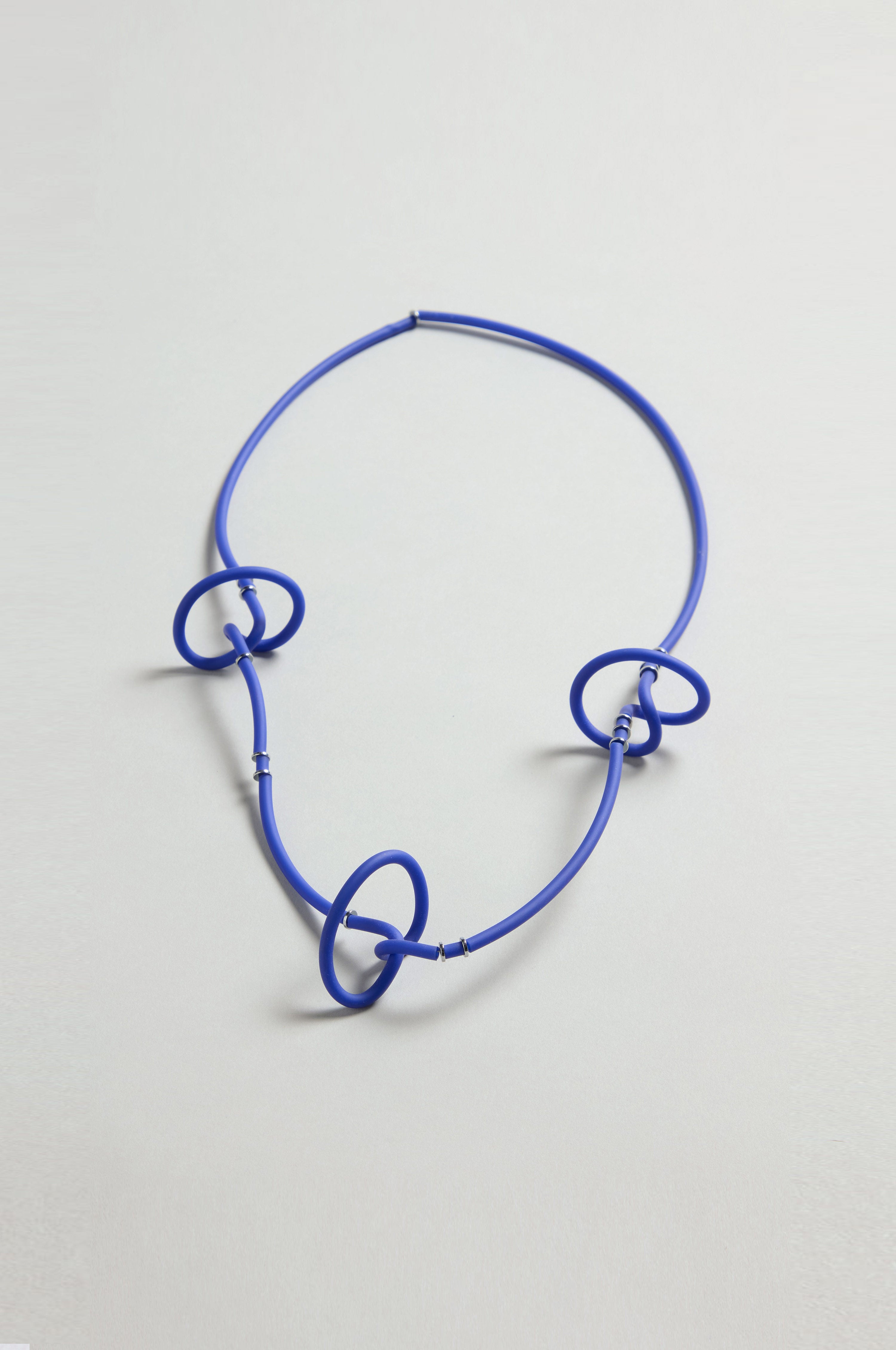 The Triple Twist Necklace by Samuel Coraux showcases a modern, sophisticated design in a vibrant blue hue. Its elegantly intertwined strand offers a contemporary statement piece that enhances any outfit, bringing refined style and artistry to your collection.