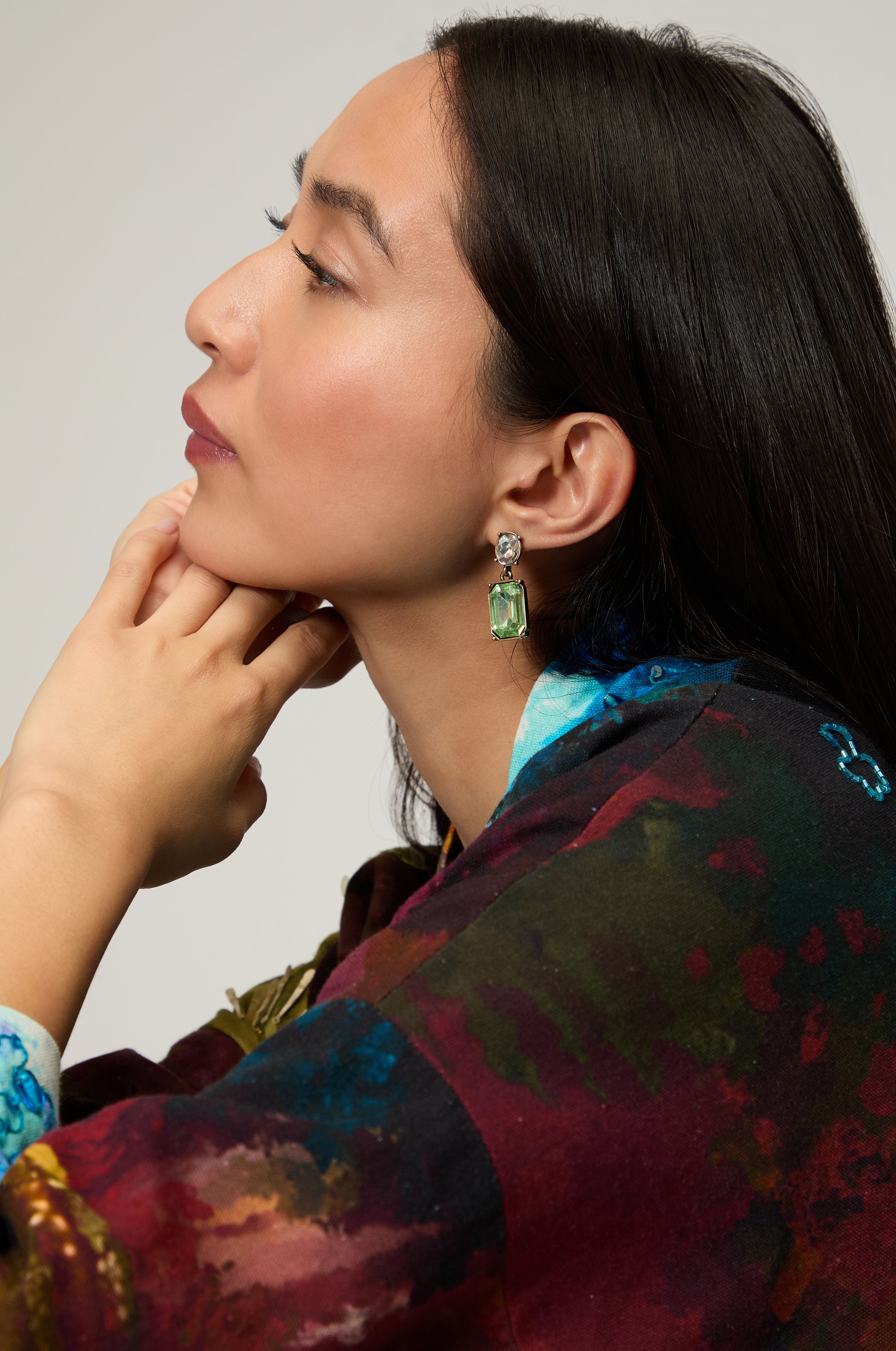 The Sahara Twin Gemstone Earrings balance modern design with timeless sparkle. Each drop pairs two faceted stones in complementary tones, catching the light with every movement. Lightweight yet impactful, they bring a refined sense of play to both day and evening outfits.