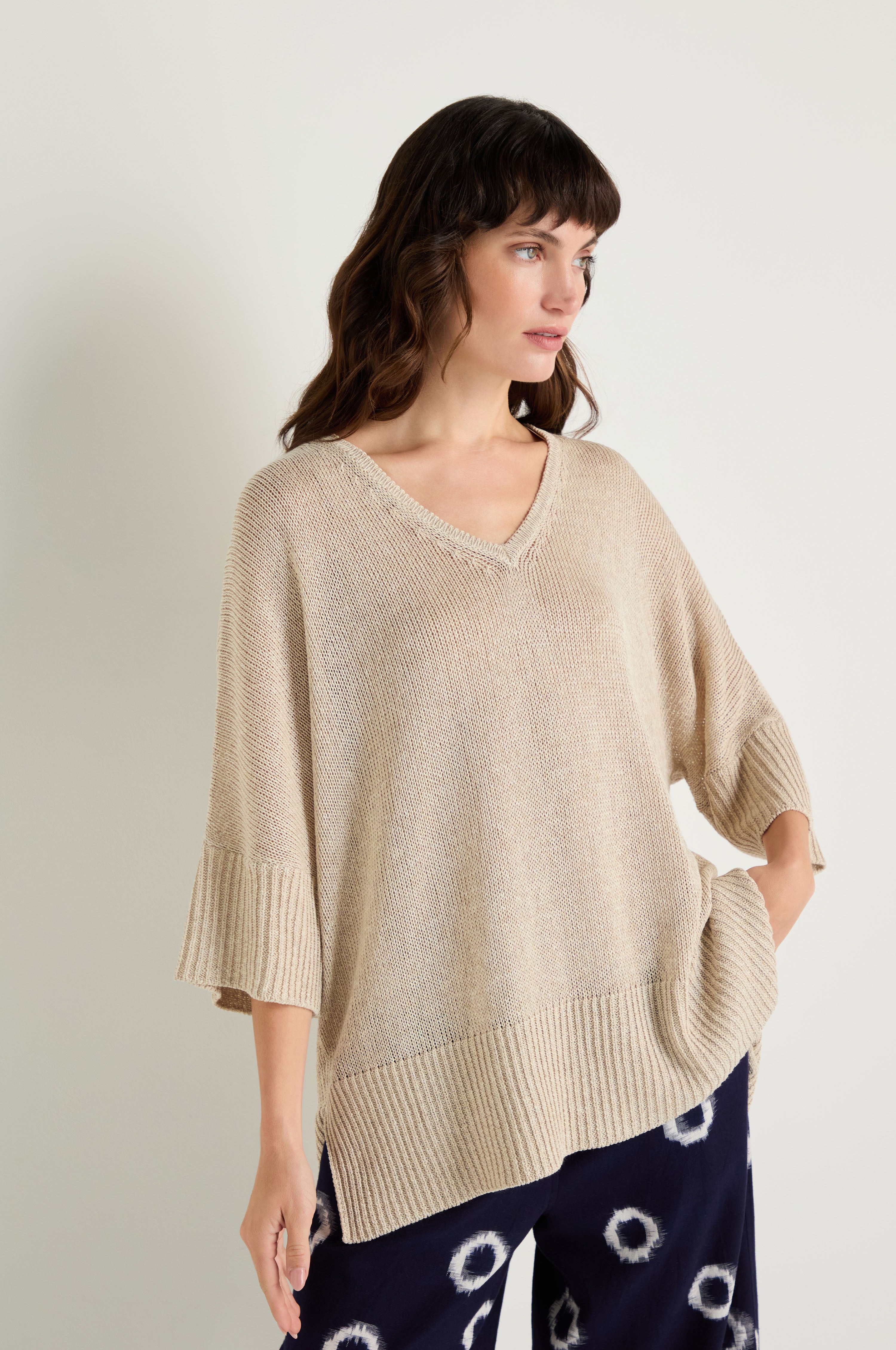 - Relaxed V-neck
