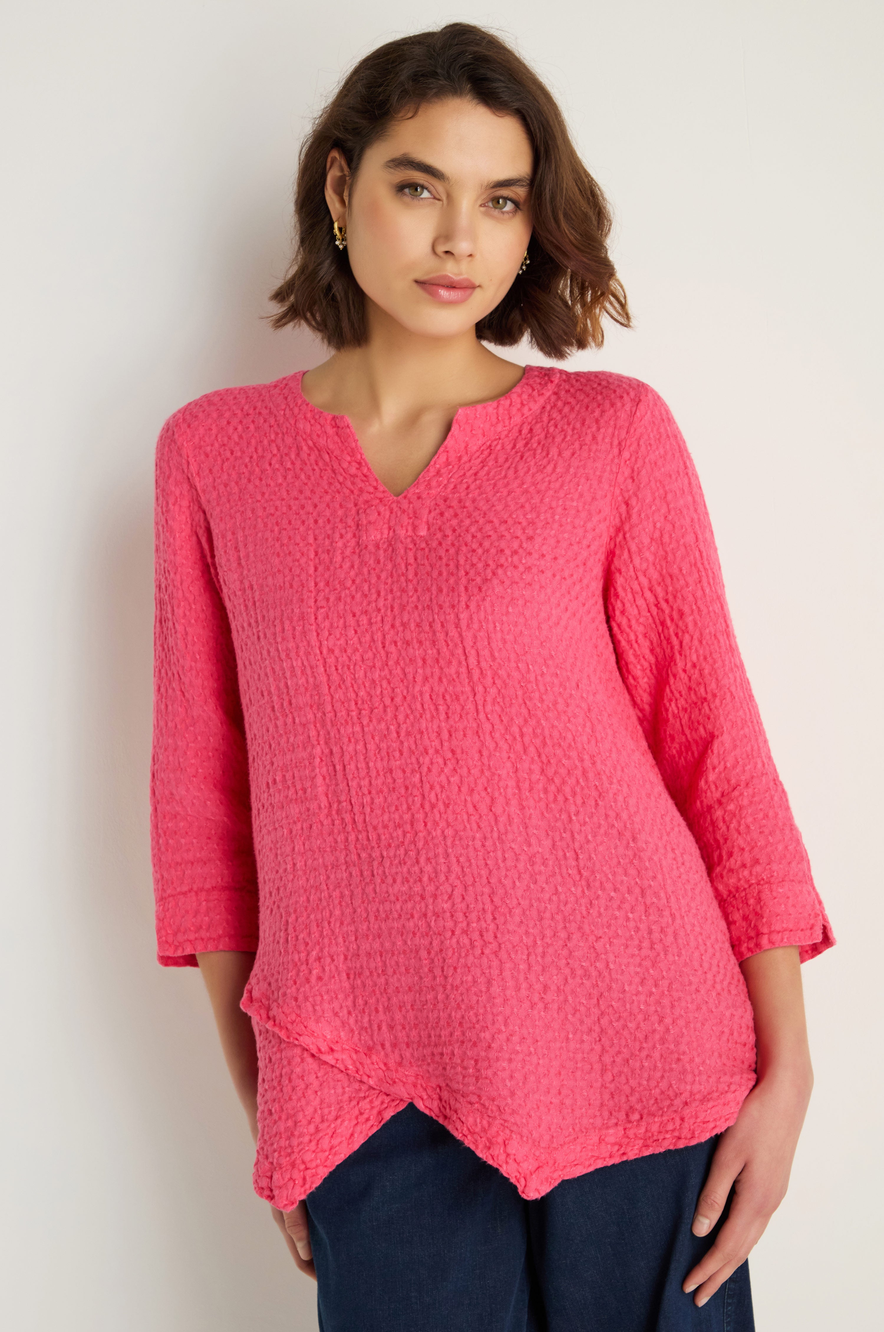 The Sahara Waffle Linen Asymmetric Tunic is crafted from 100% linen with a distinctive, waffle texture that adds depth and character. Designed with an easy tunic drape, it combines relaxed comfort with thoughtful design details and asymmetry.